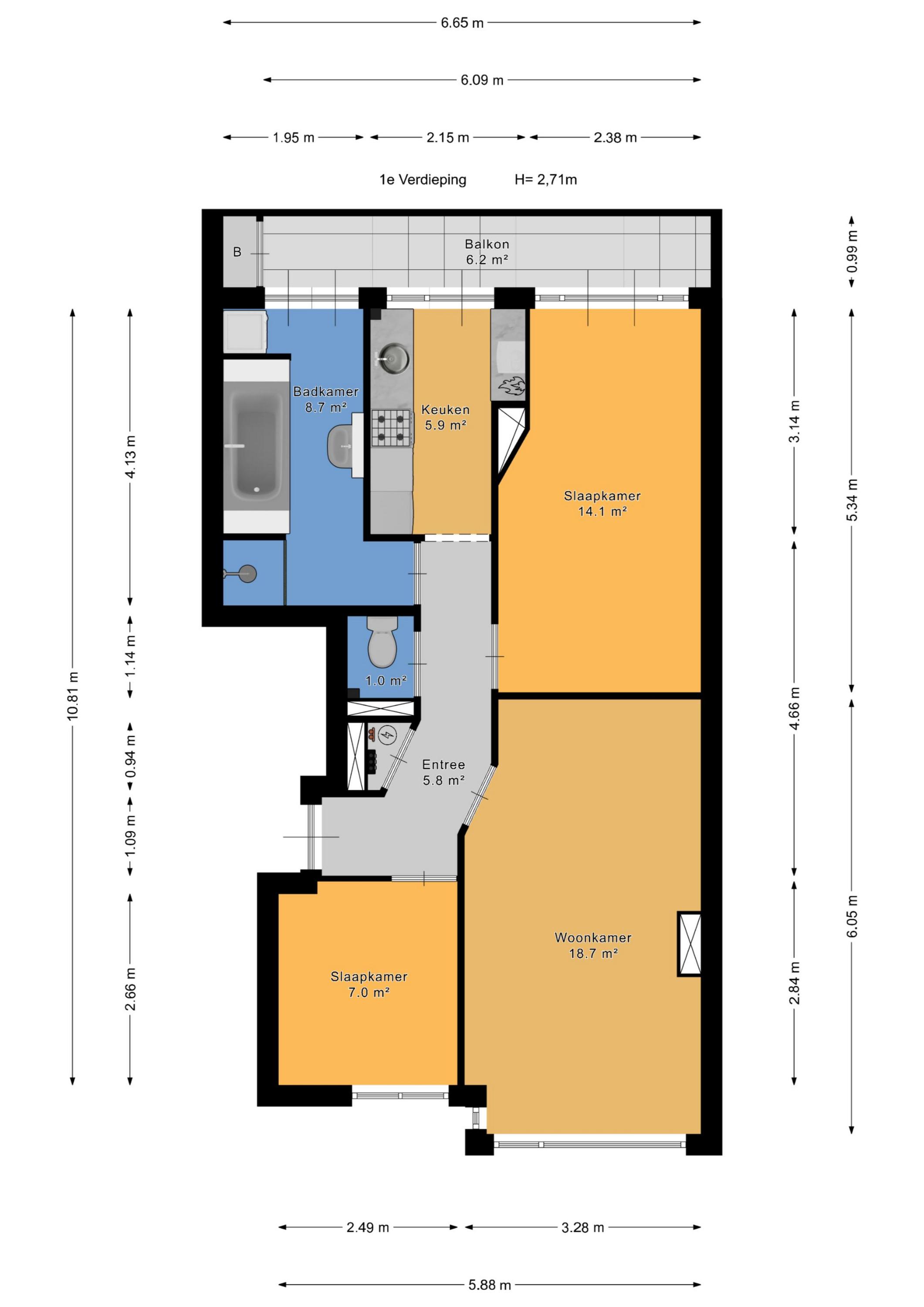 Toegang via open portiek met trap naar 1e etage, entree woning, hal en toegang tot alle vertrekken.
