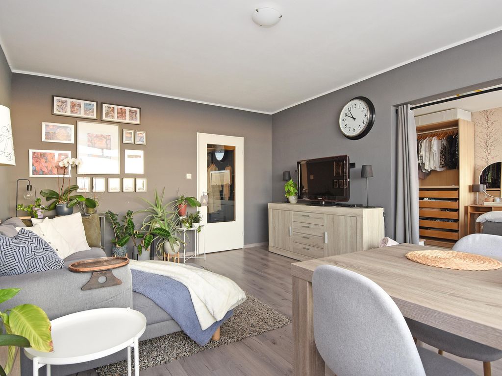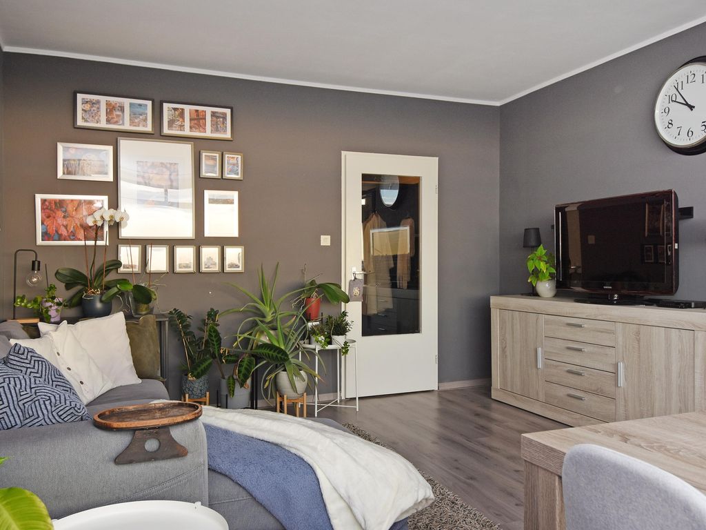 Ruime wooneetkamer (ca. 5.33 x 3.97m) met deur naar het terras.