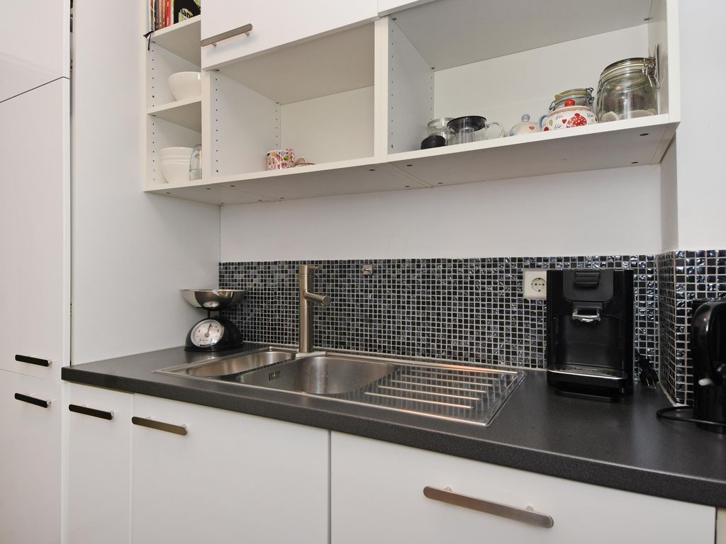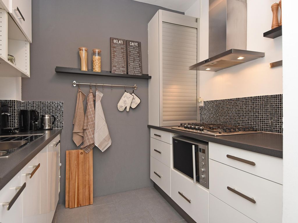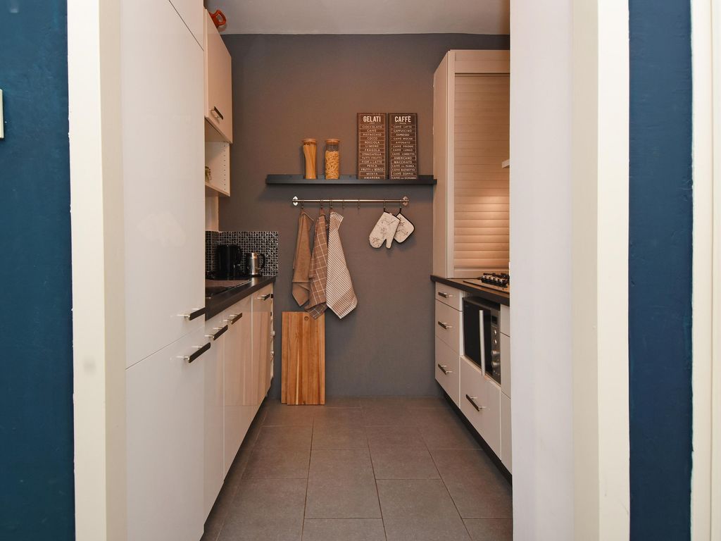 Nette keuken (ca. 2.38 x 2.33m) met 5-pits gaskookplaat, combi-oven, afzuigkap, koelkast, vriezer en vaatwasser.