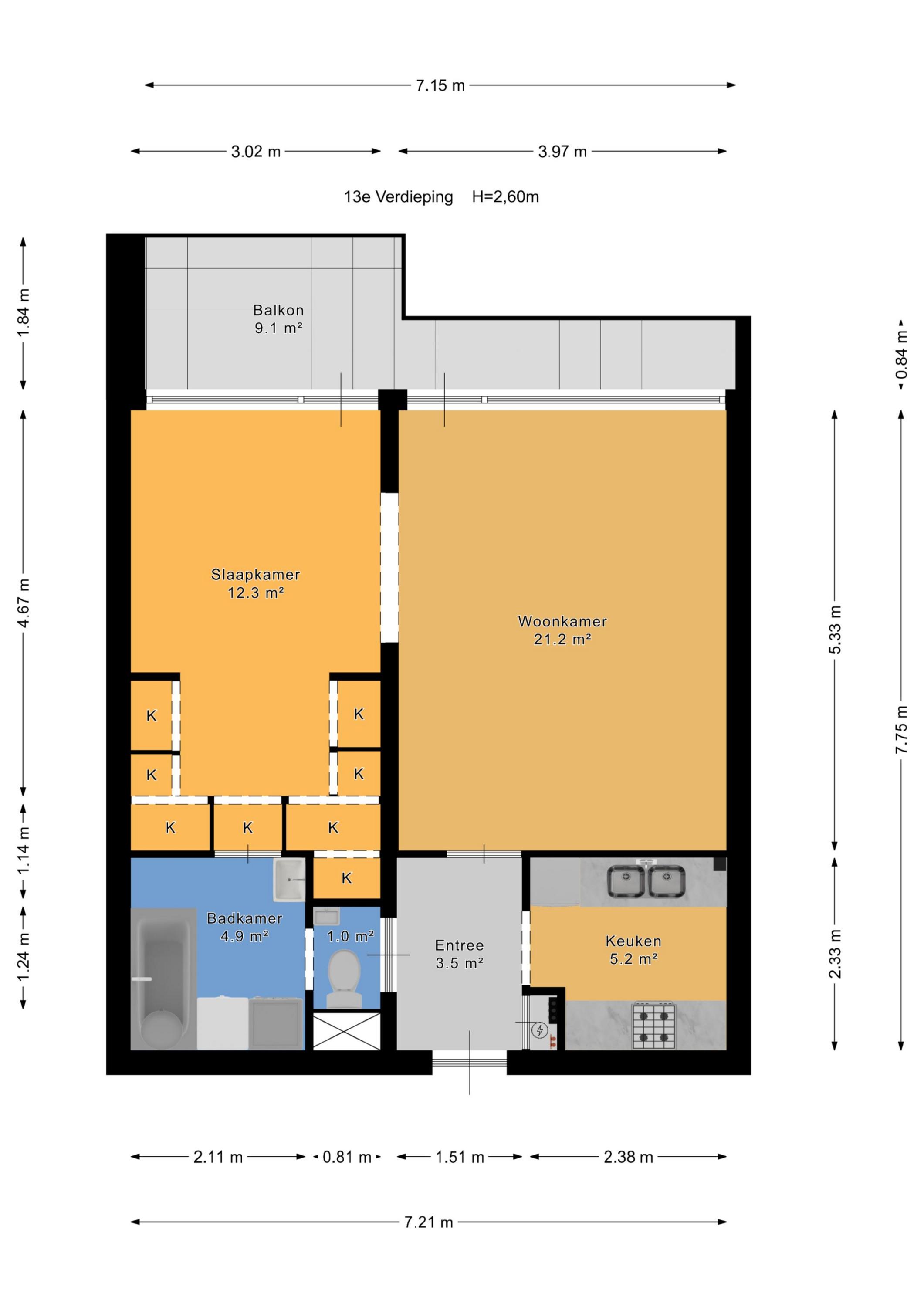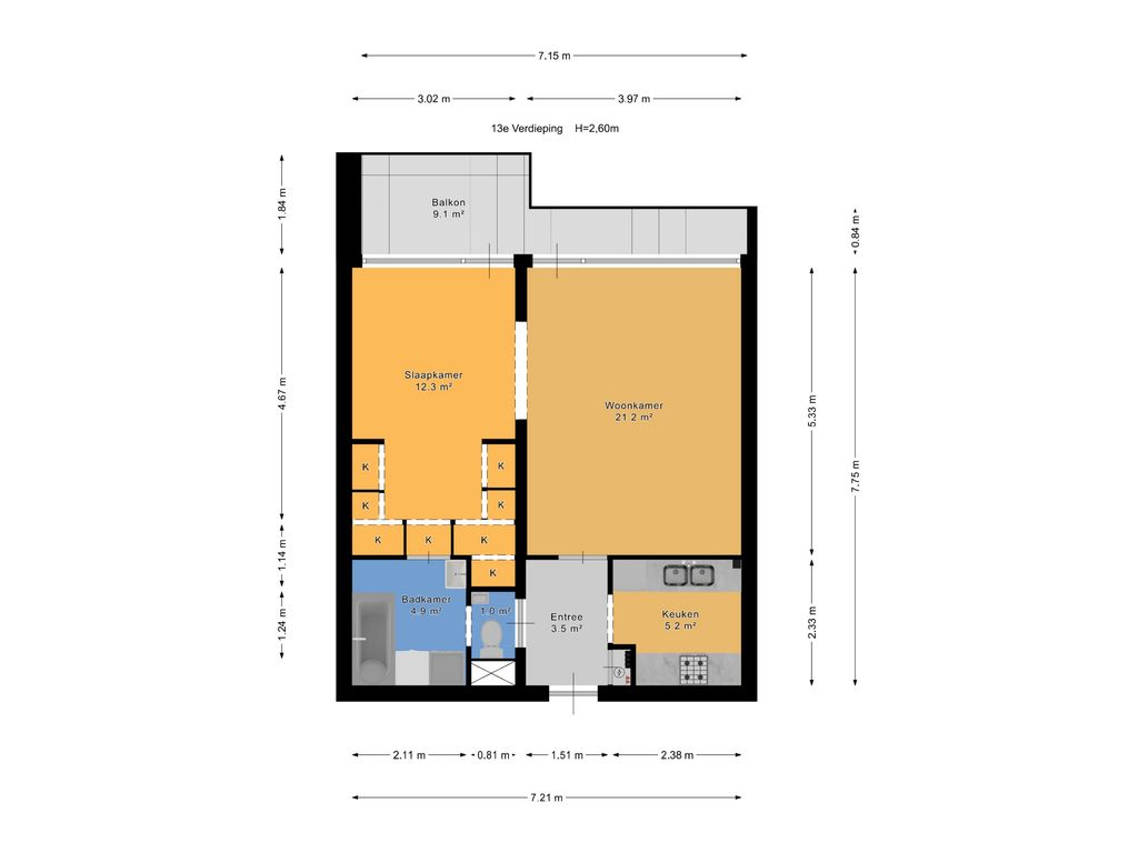 Toegang via gesloten entree met brievenbussen, bellentableau en intercom, lift naar 13e etage, alwaar binnengalerij.