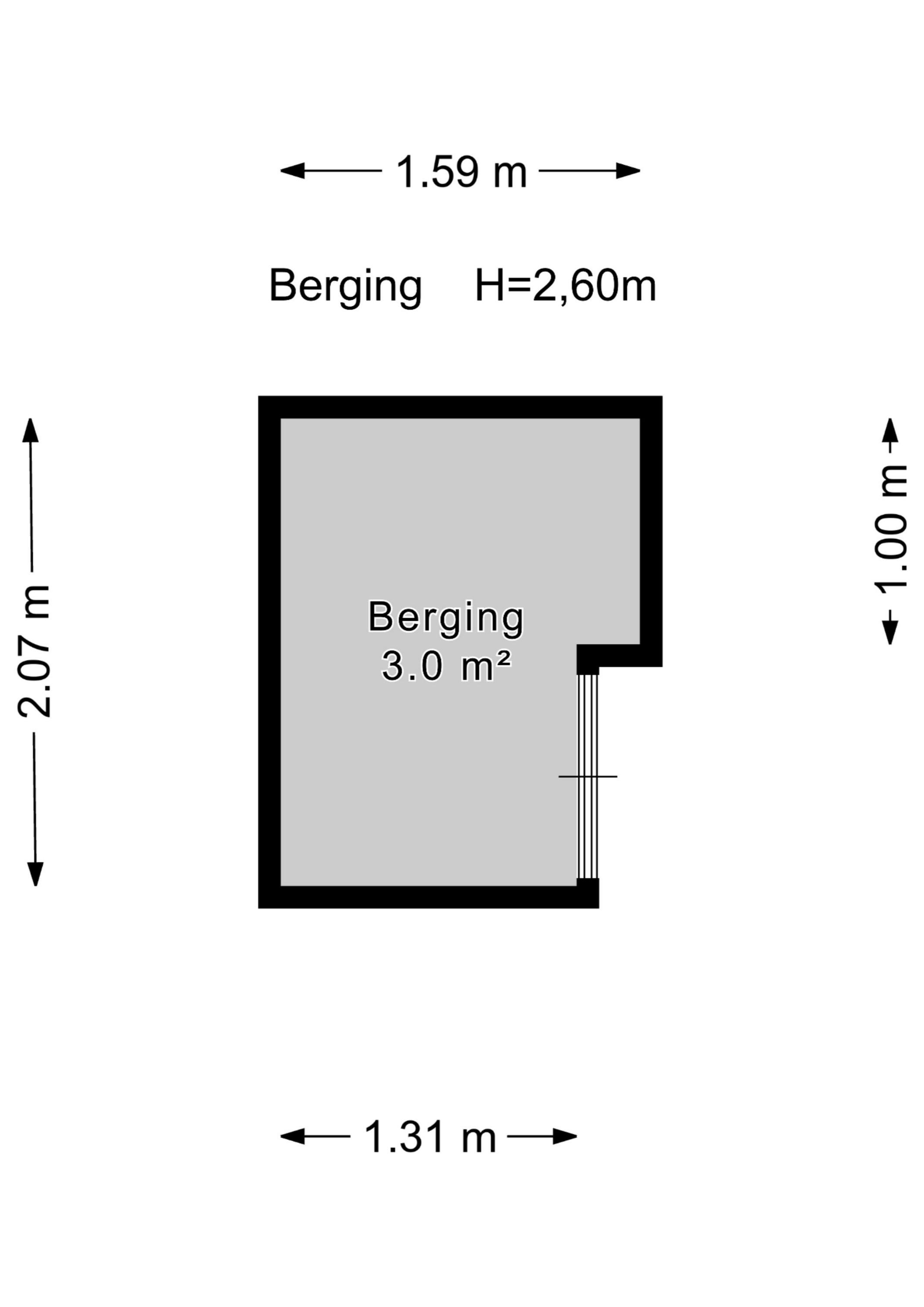 Eigen separate berging verder op de galerij van de woonverdieping.