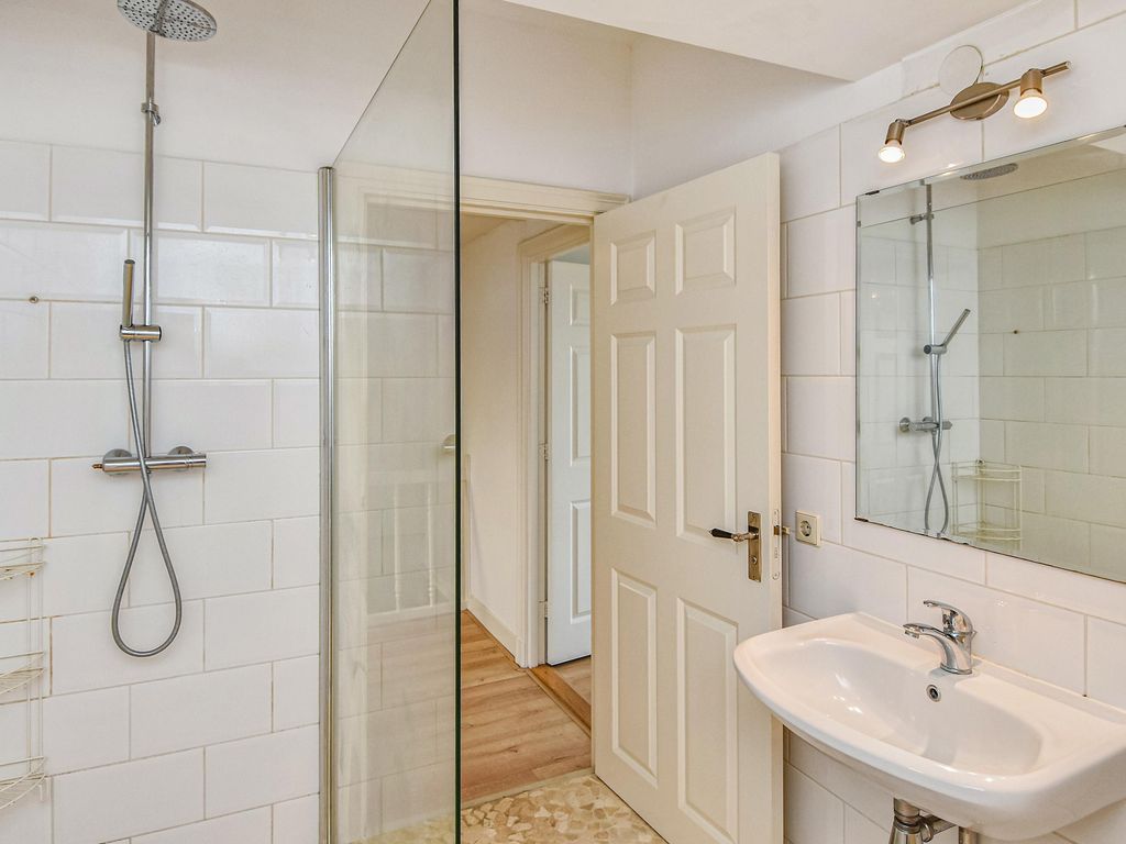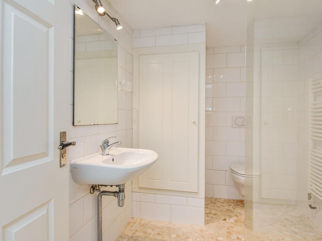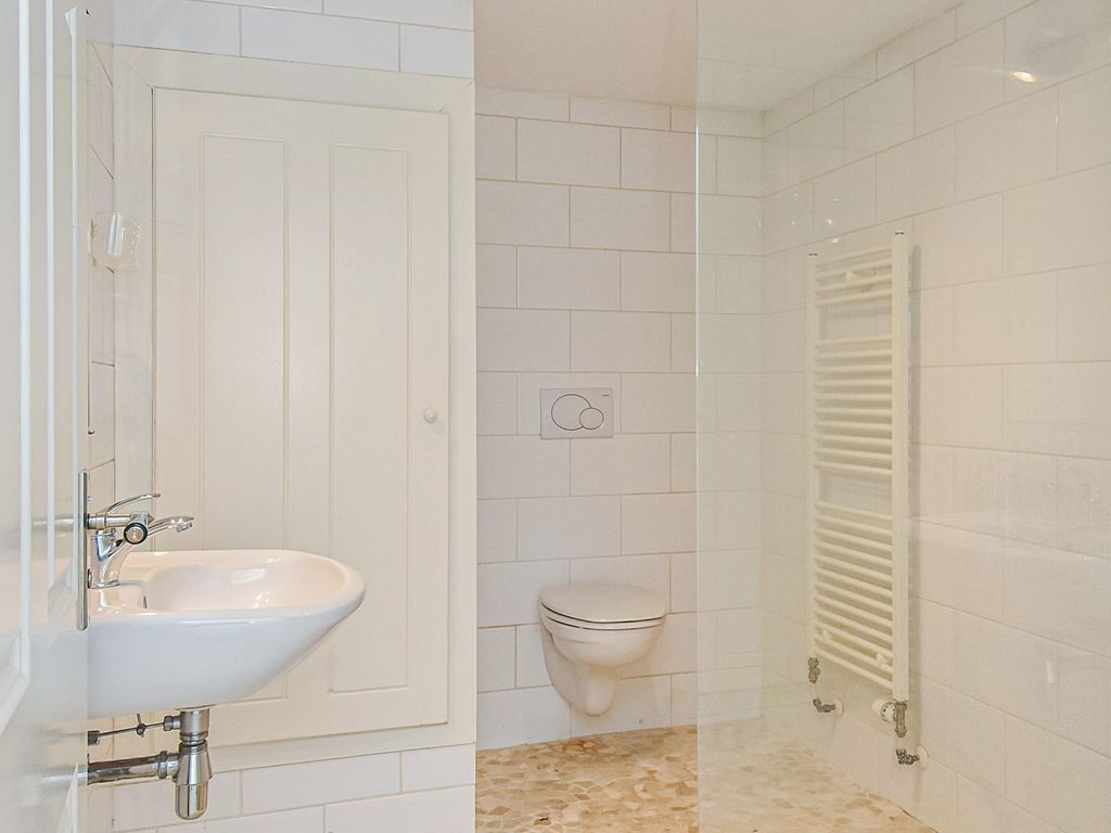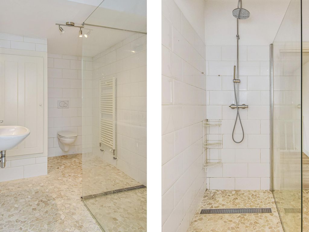 Nette badkamer (ca. 2.79 x 2.00m) met inloopdouche, toilet en wastafelmeubel.