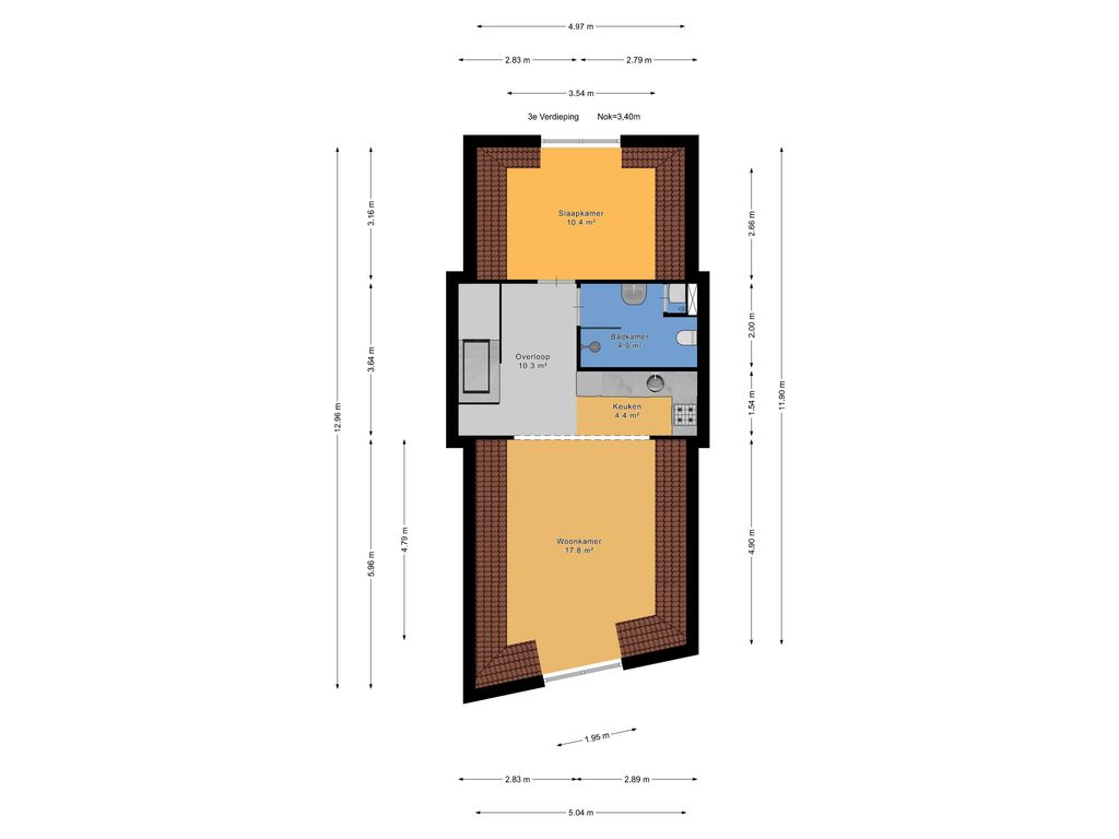 Ruime wooneetkamer (ca. 4.79 x 3.54m/de vloermaat is 5.96 x 5.04).