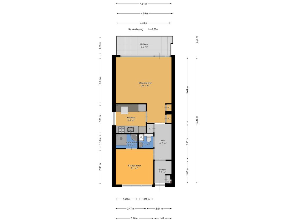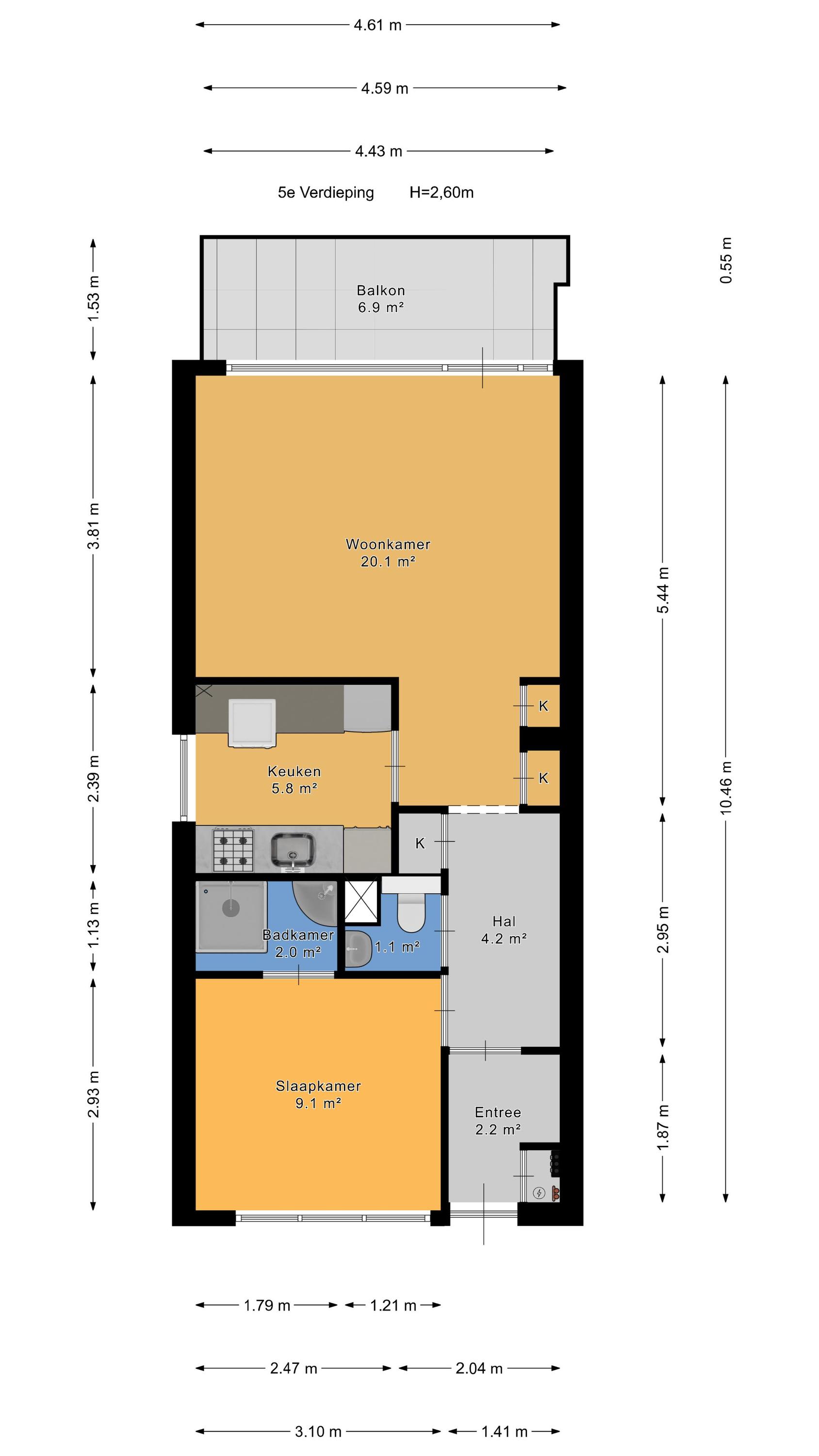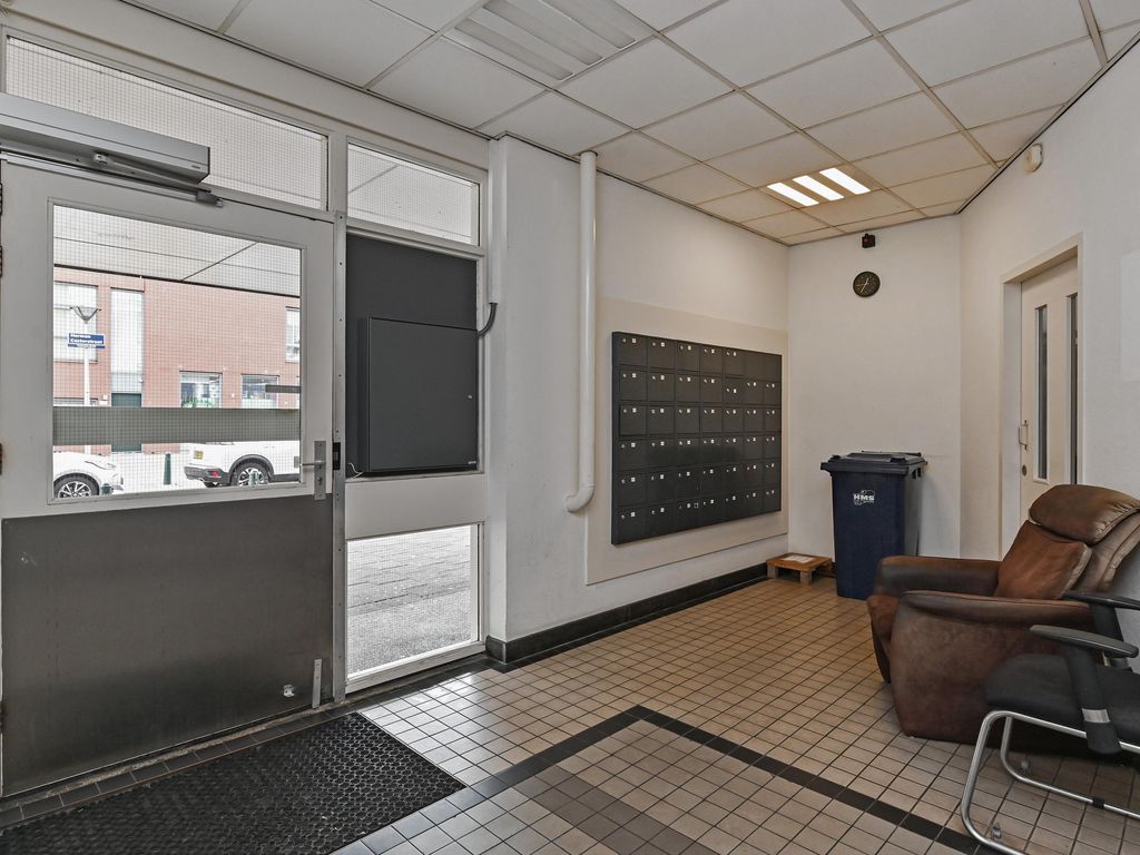 Toegang via centrale entree met brievenbussen, bellentableau, intercom en lift naar 5e etage, alwaar galerij.