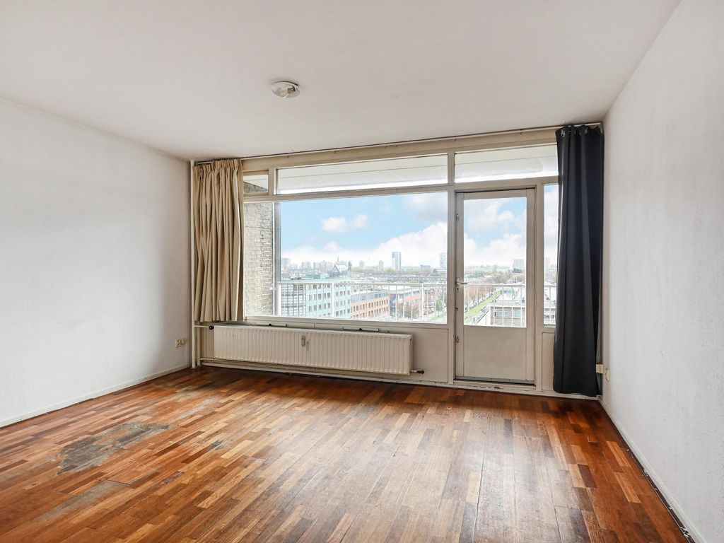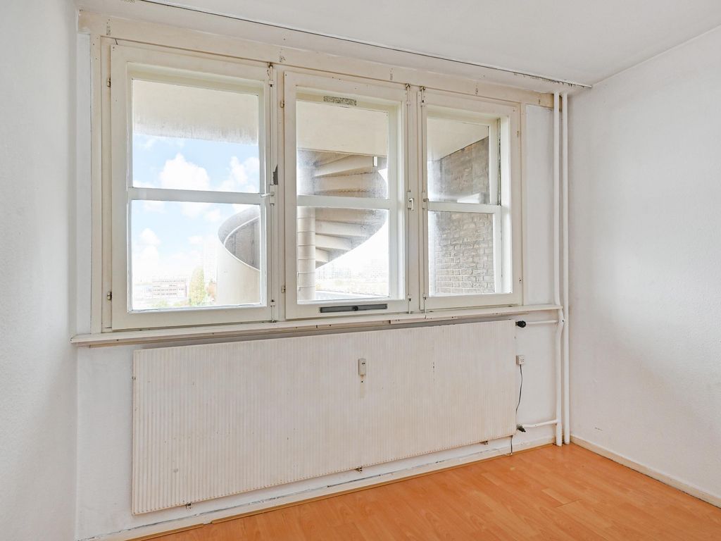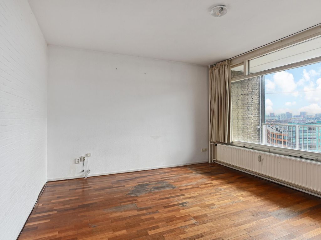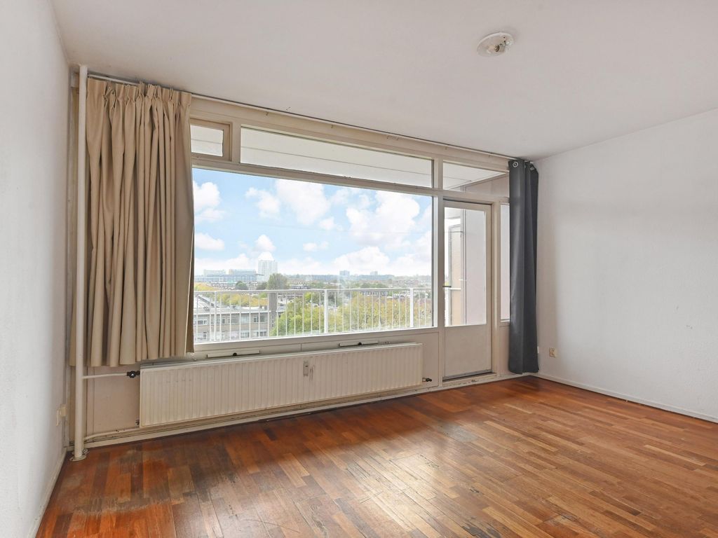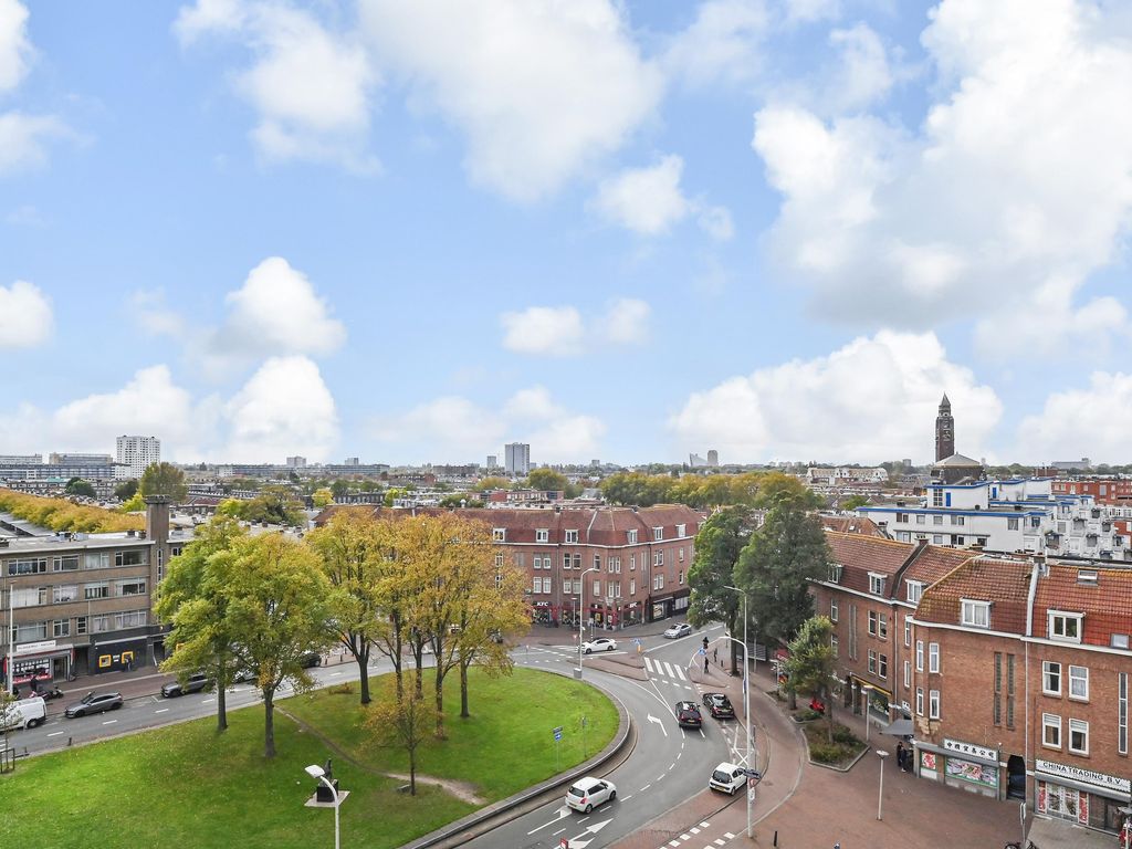 MET FRAAI UITZICHT OVER DE SKYLINE VAN DEN HAAG GELEGEN, EENVOUDIG 2-KAMER 5E ETAGE APPARTEMENT MET TERRRAS, LIFT, EIGEN BERGING, PARKEREN OP EIGEN TERREIN EN GELEGEN OP EIGEN GROND.