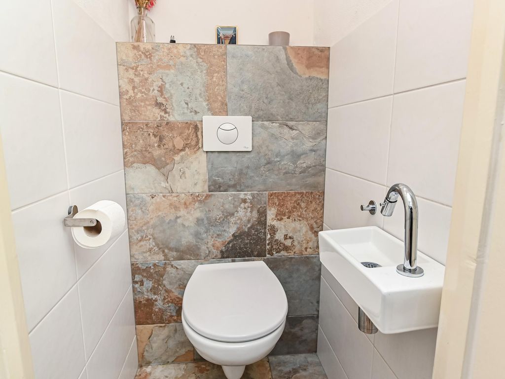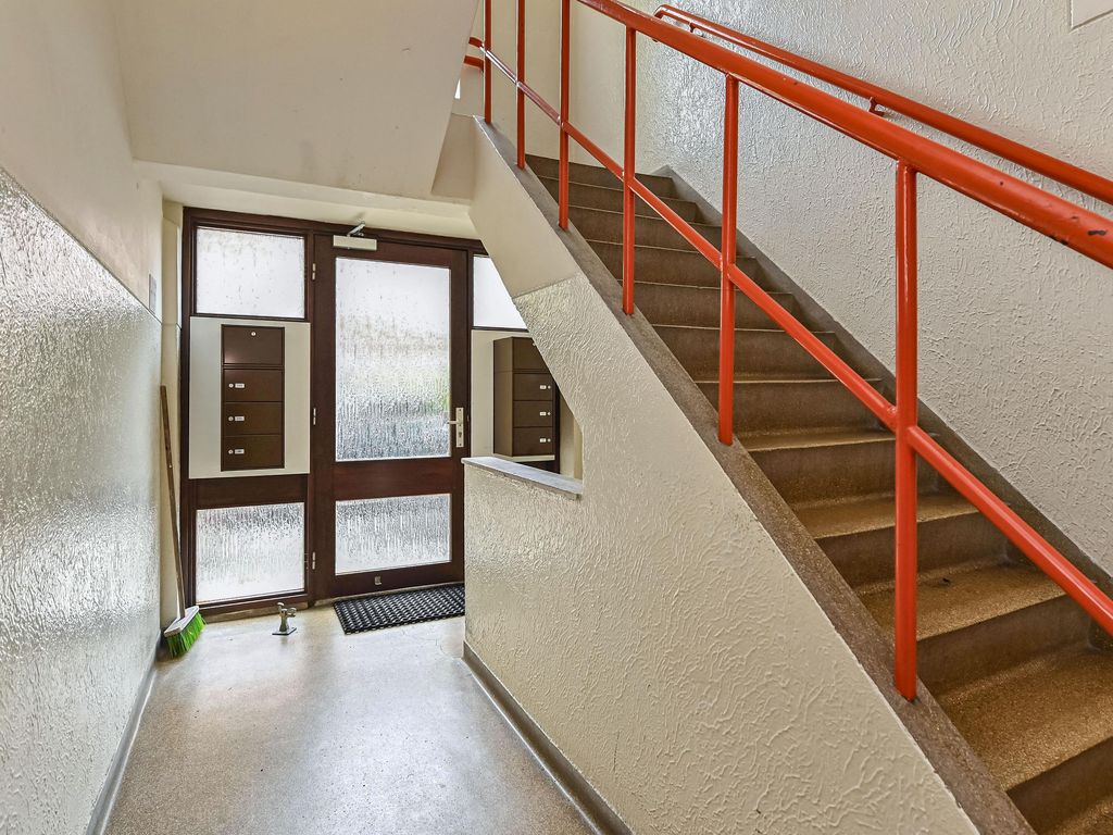 Toegang via gesloten portiek met bellentableau, brievenbussen en intercom, Trap naar 2e etage, entree woning, ruime hal met meterkast en modern separaat toilet.