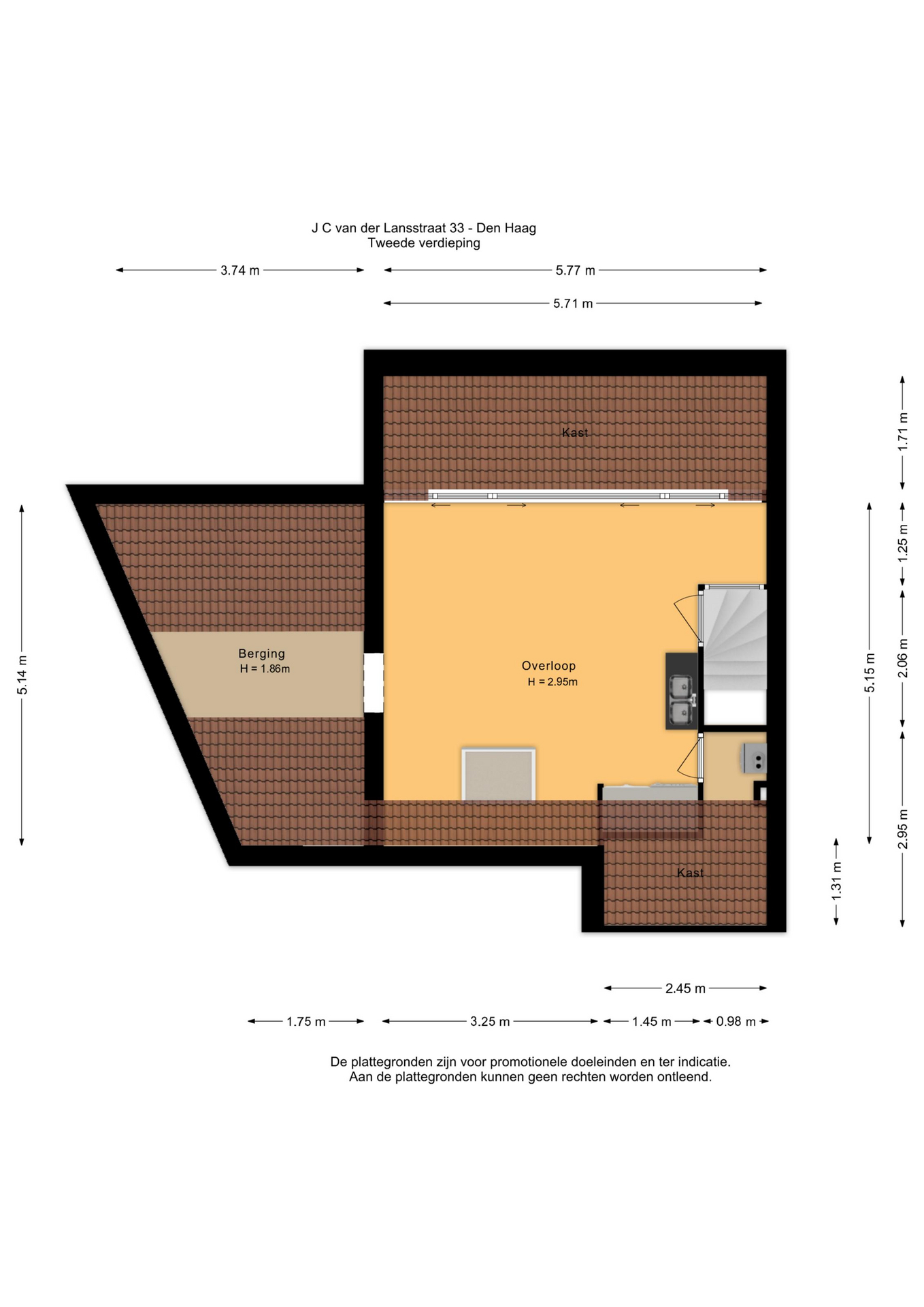 2e slaapkamer (ca. 5.10 x 4.14m) schuin verlopend.