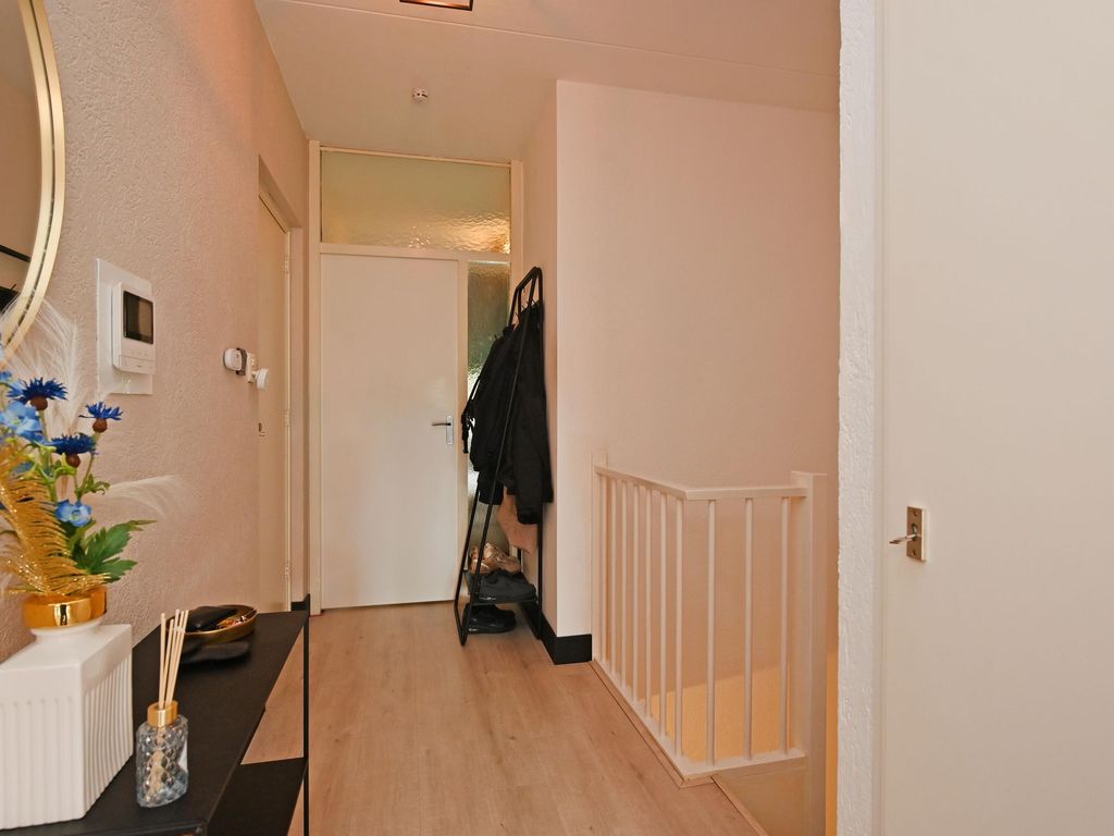 Via de binnentrap in de hal loop je een etage naar beneden, hier vindt je de tweede slaapkamer, de badkamer en de meterkast. Daarnaast is er op deze verdieping een achteruitgang naar de bergingen en de parkeerplaats