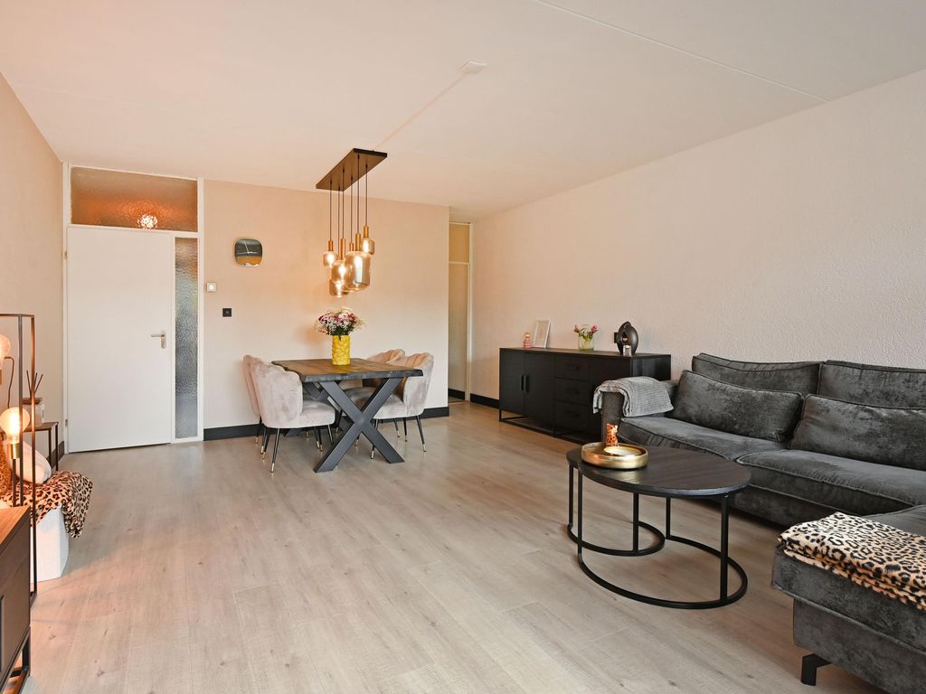 De royale wooneetkamer (ca. 6.38 x 4.92m) biedt toegang tot het terras en beschikt over veel natuurlijk lichtinval. Het terras (ca. 4.53 x 1.58m) is gelegen op het zonnige Zuidwesten.