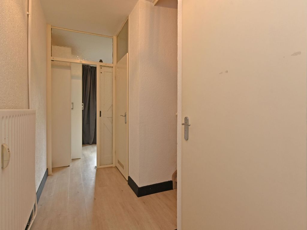 Entree van de woning, ruime hal met een vaste kast en toegang tot de woonkamer en de eerste slaapkamer.