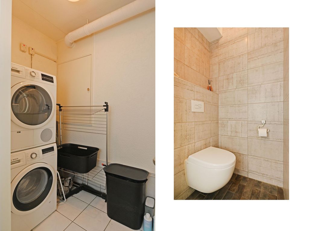 Naast de keuken bevindt zich de wasruimte en toegang tot het toilet.