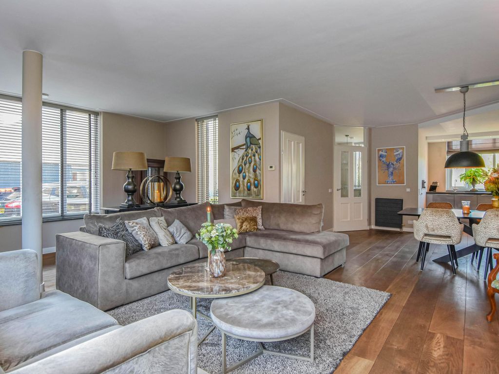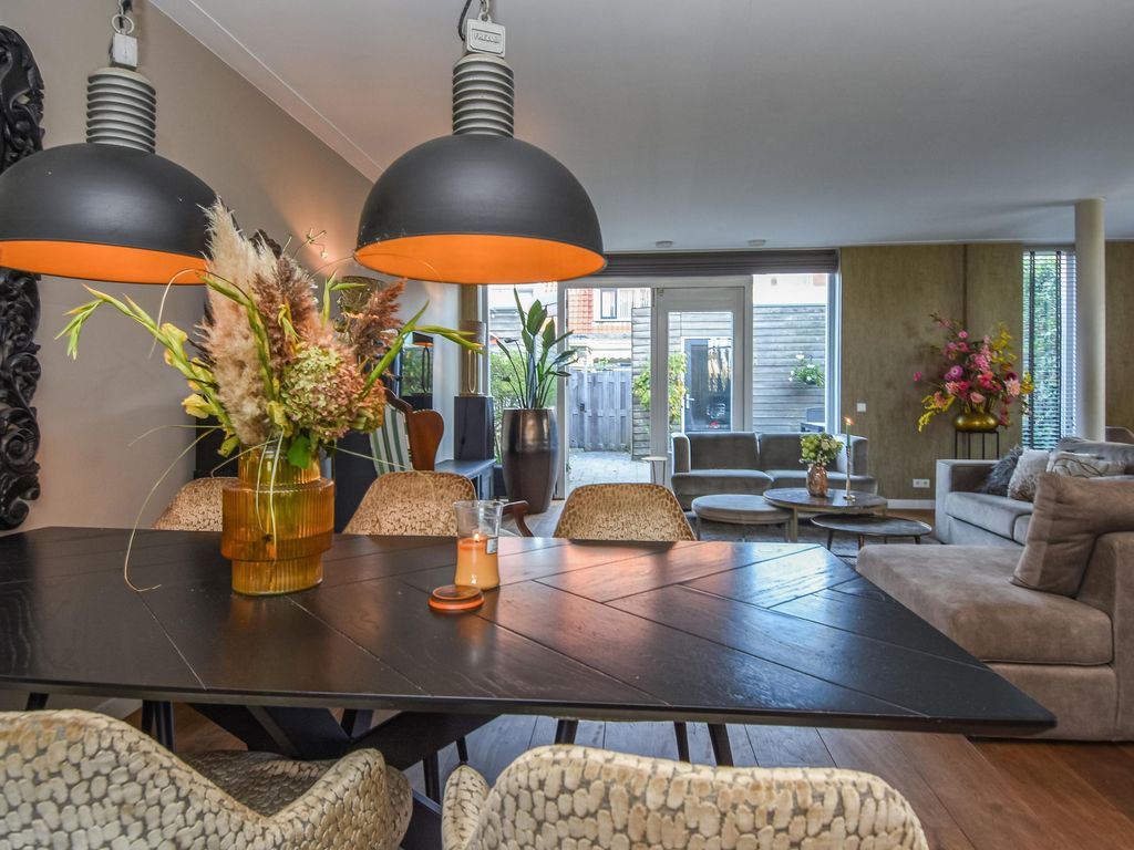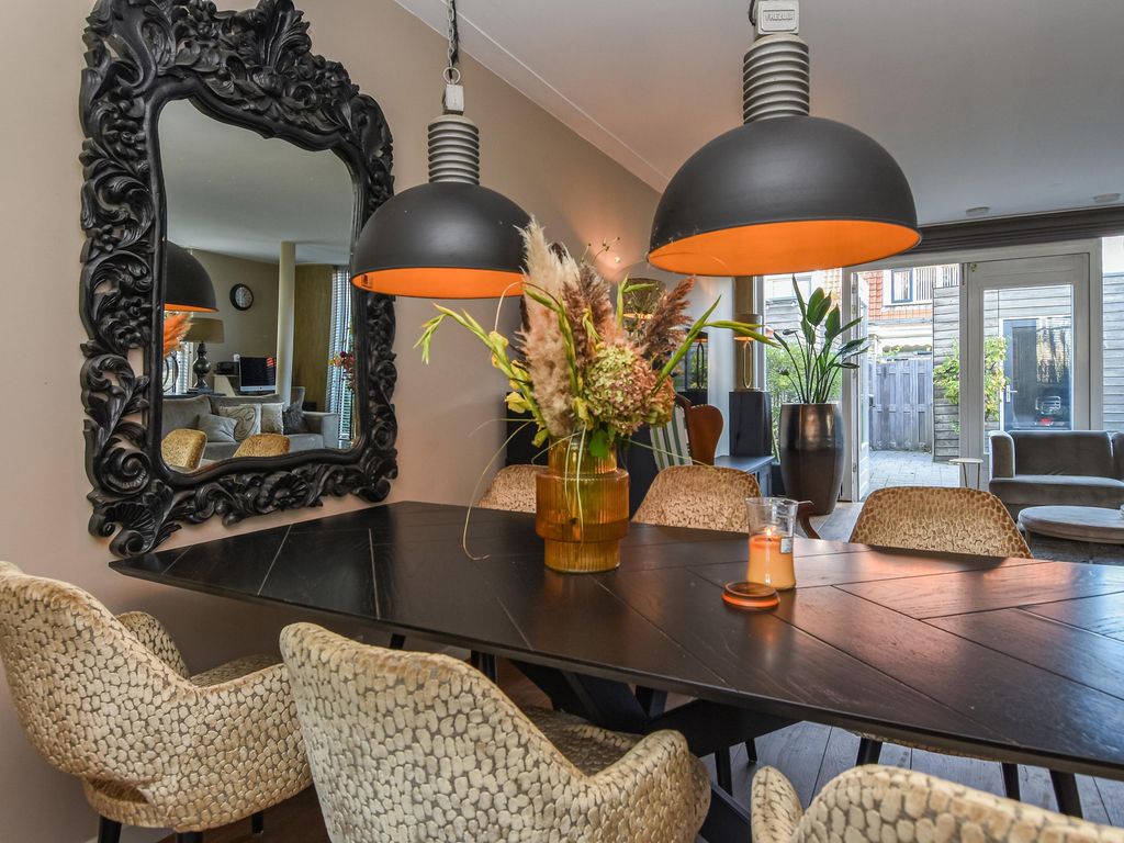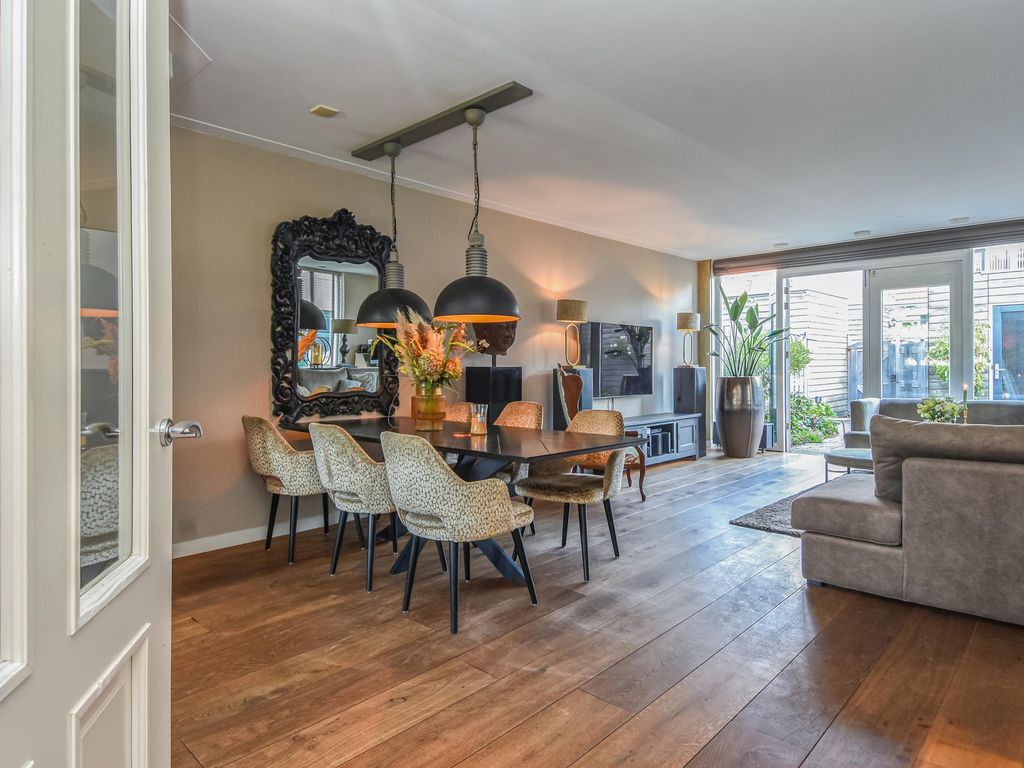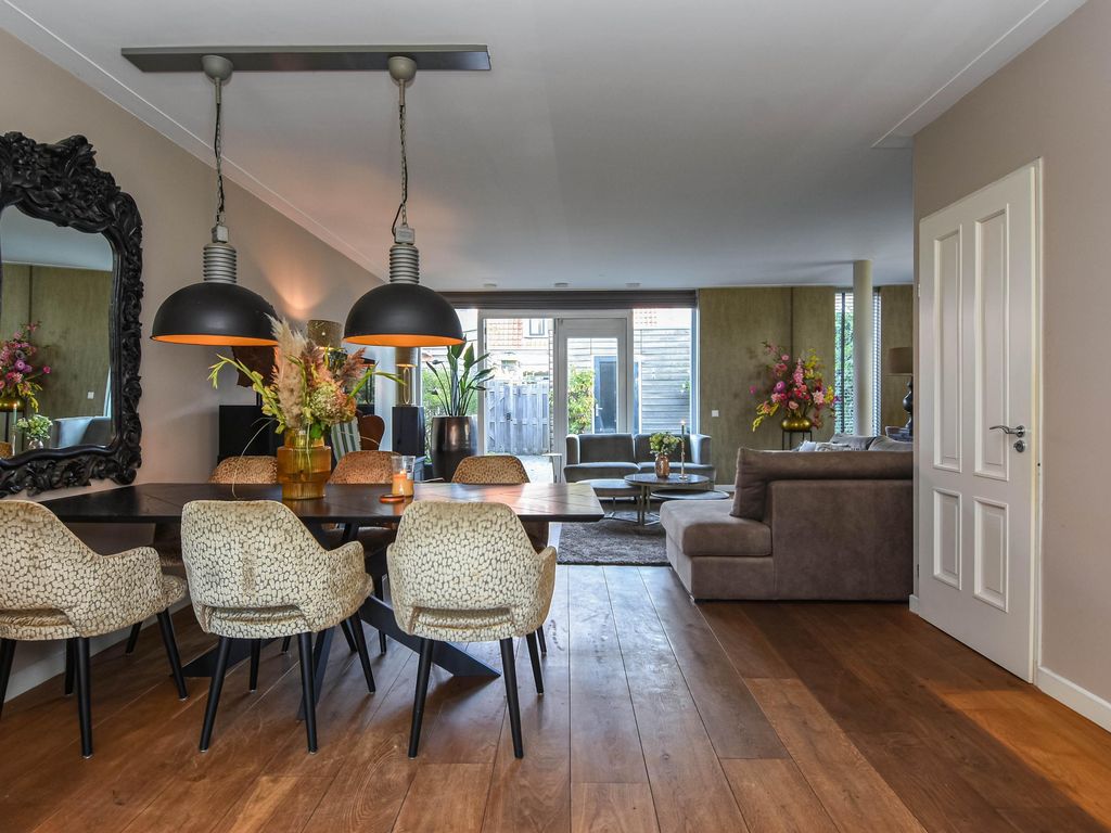 Grote uitgebouwde L-vormige wooneetkamer (ca. 7.19 x 6.17m) met openslaande deuren naar de achtertuin.
