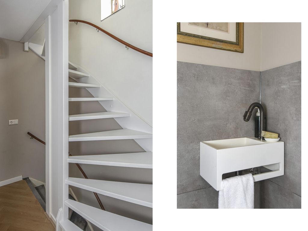 Trap naar 2e etage, alwaar overloop en was- en stookruimte.