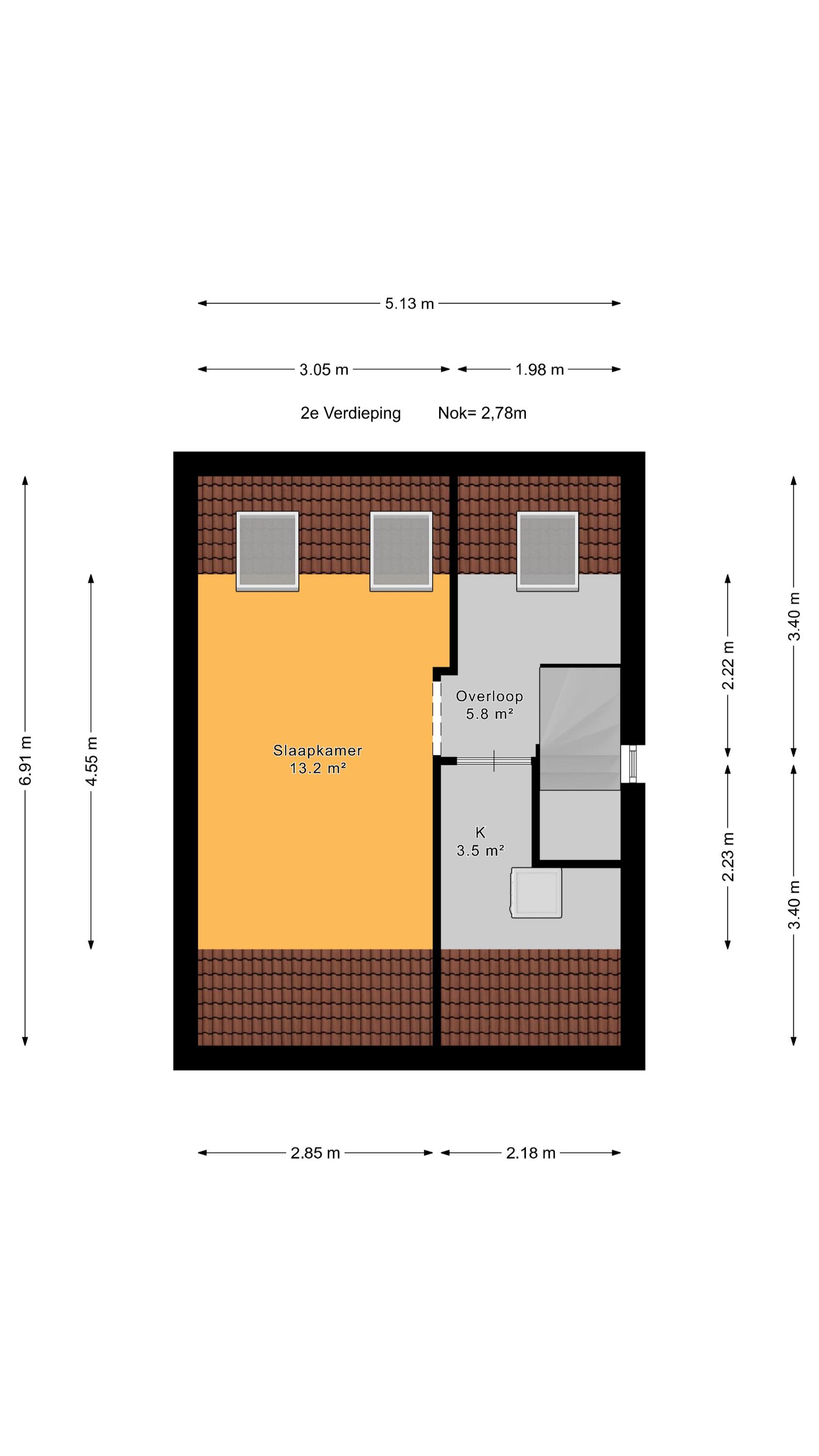 3e slaapkamer aan de achterzijde (ca. 4.61 x 1.98m).