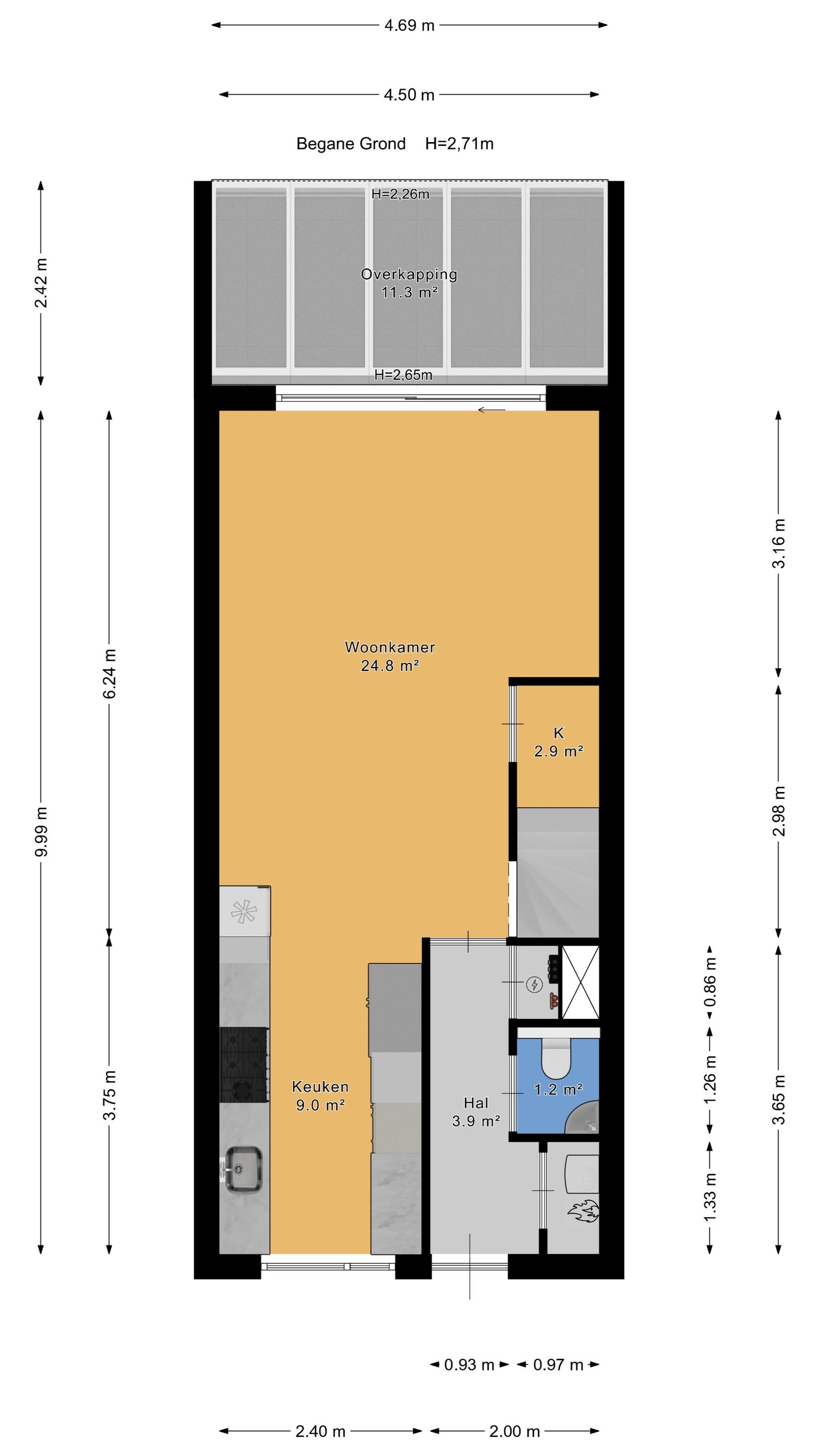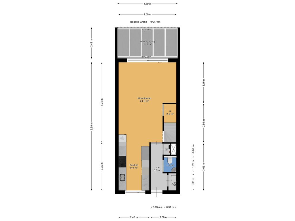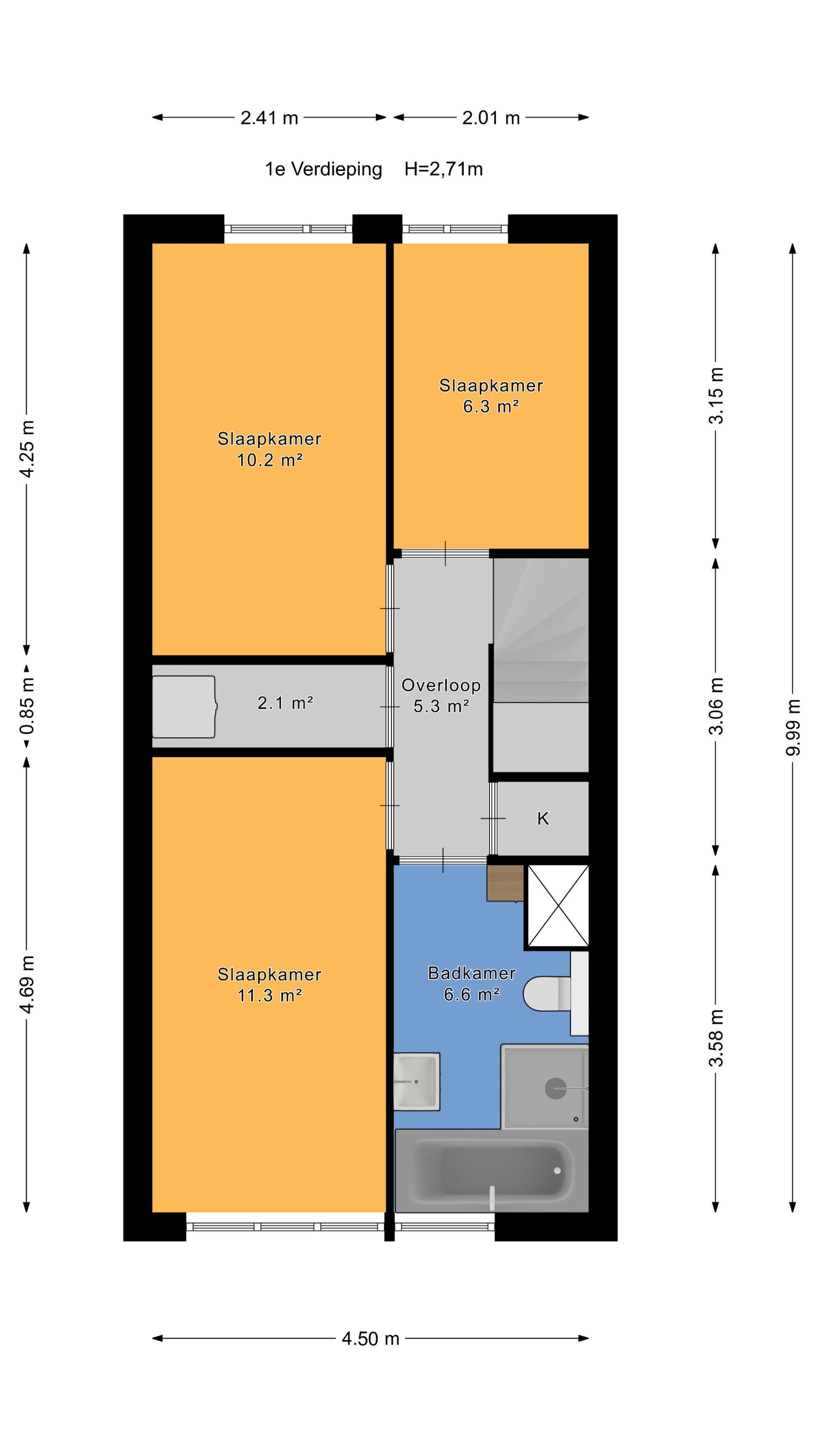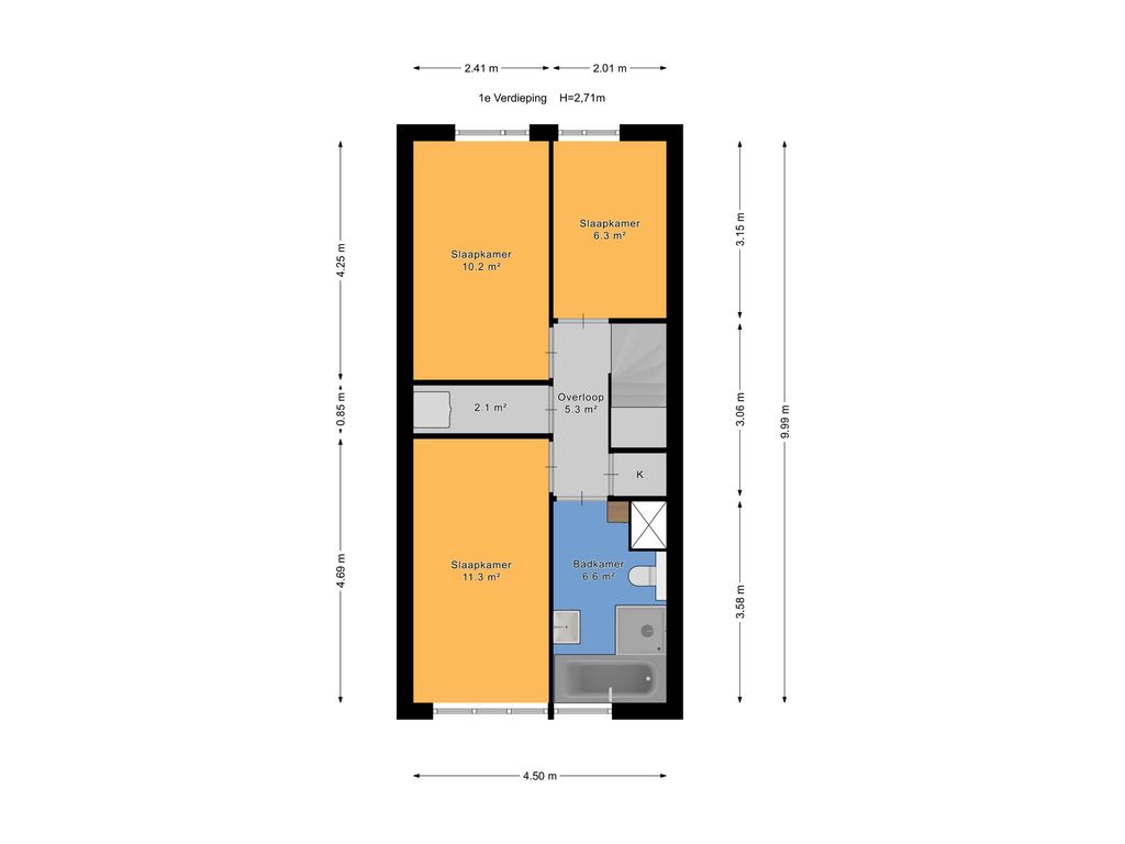 Grote voorslaapkamer (ca. 4.69 x 2.41m).