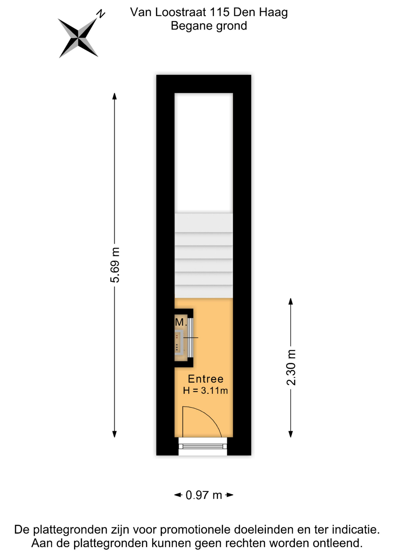 Toegang op straatniveau met meterkast en binnentrap naar 1e etage alwaar entree woning.