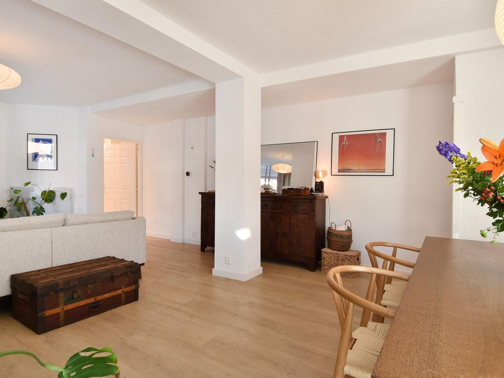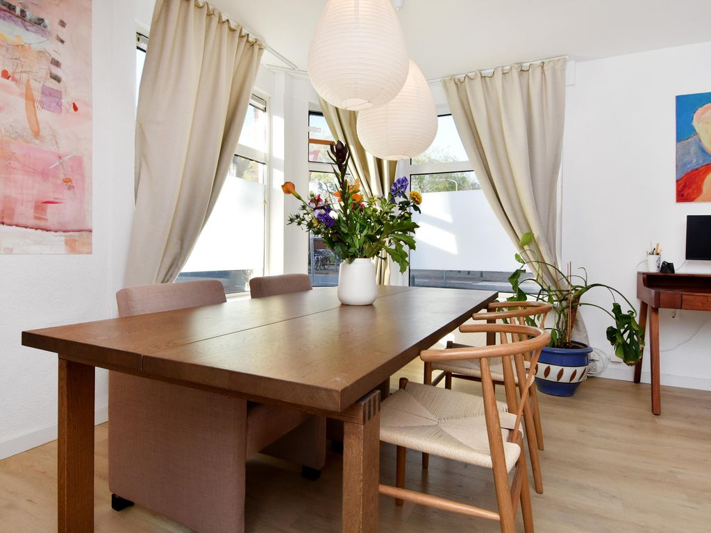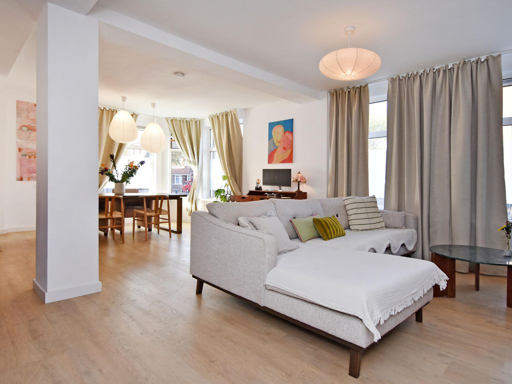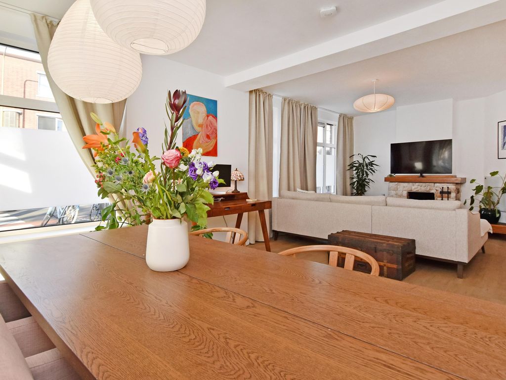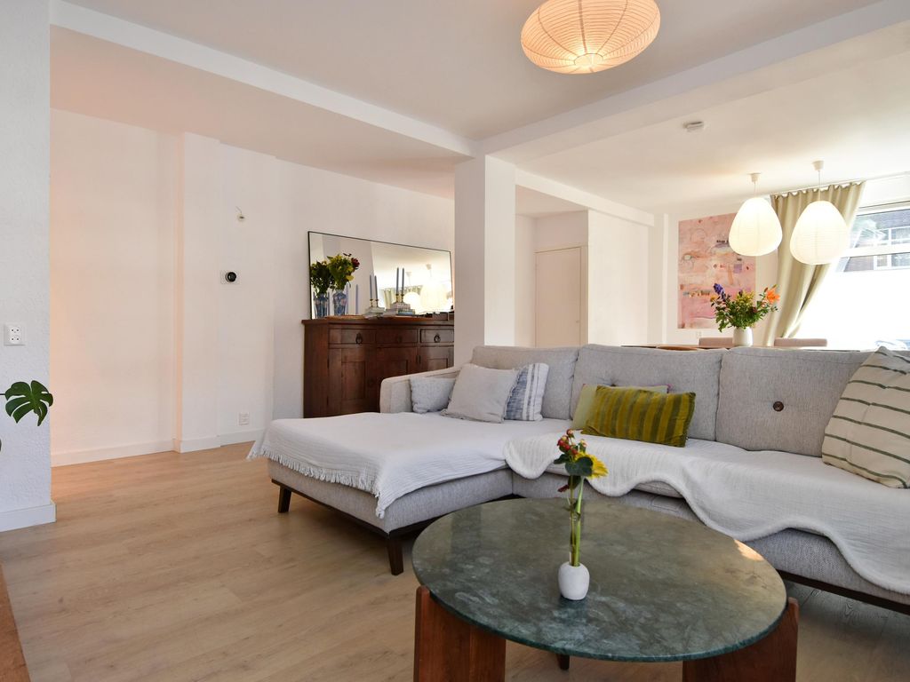 Ruime doorgebroken wooneetkamer (ca. 8.45 x 4.67m) met door de hoekligging veel lichtinval.