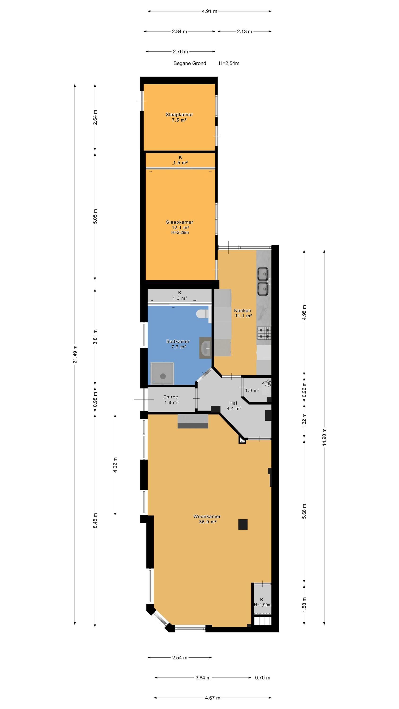 Een 3e slaapkamer kan worden gerealiseerd door het plaatsen van een wand in de doorgebroken wooneetkamer.