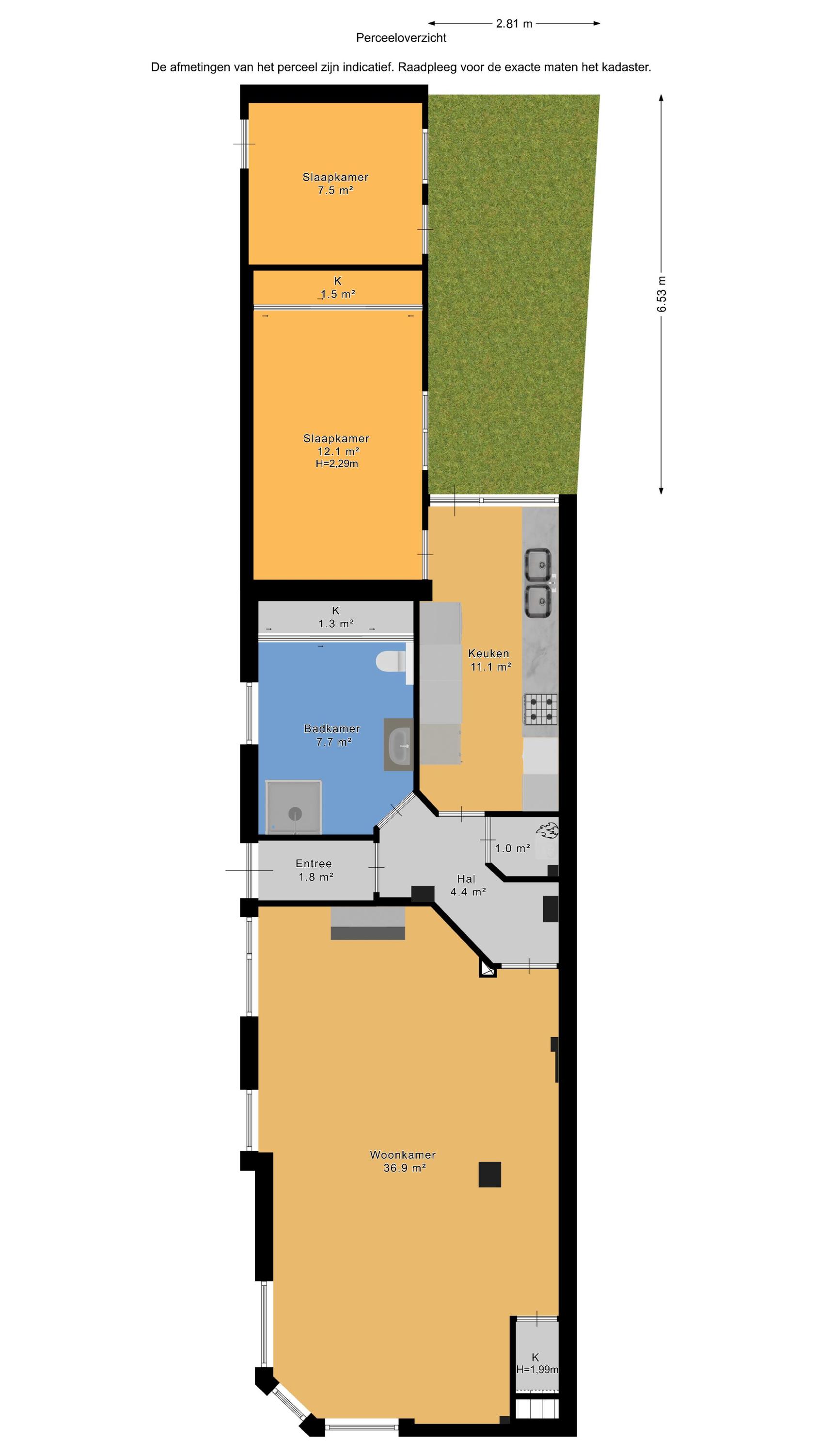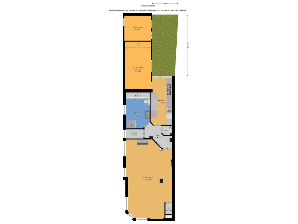 2e slaapkamer (ca. 2.76 x 2.64m) te bereiken via de achtertuin.