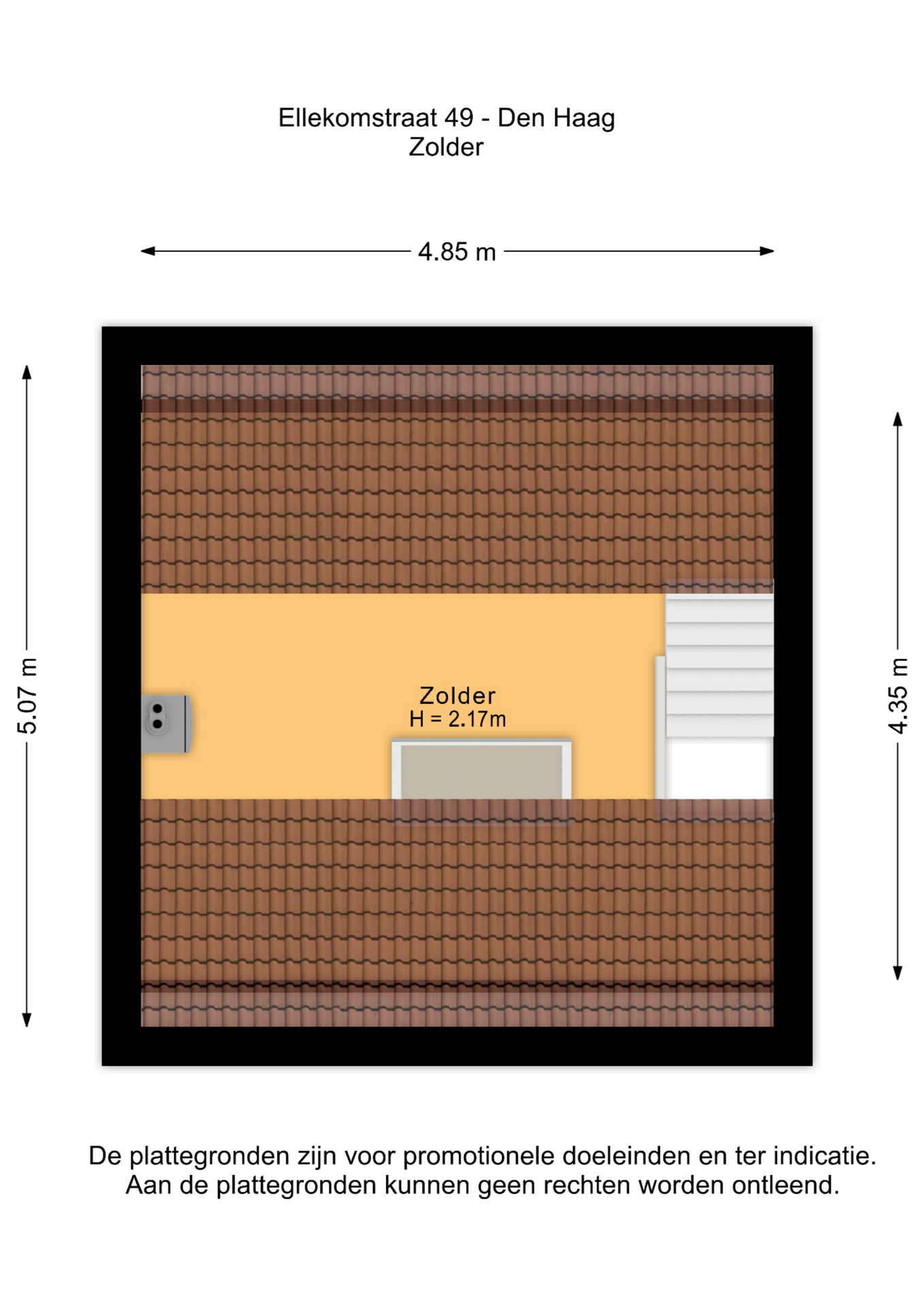 Mogelijkheid voor grote 6e slaapkamer (vloeroppervlak ca. 4.85 x 4.35m, nokhoogte ca. 2.17m).