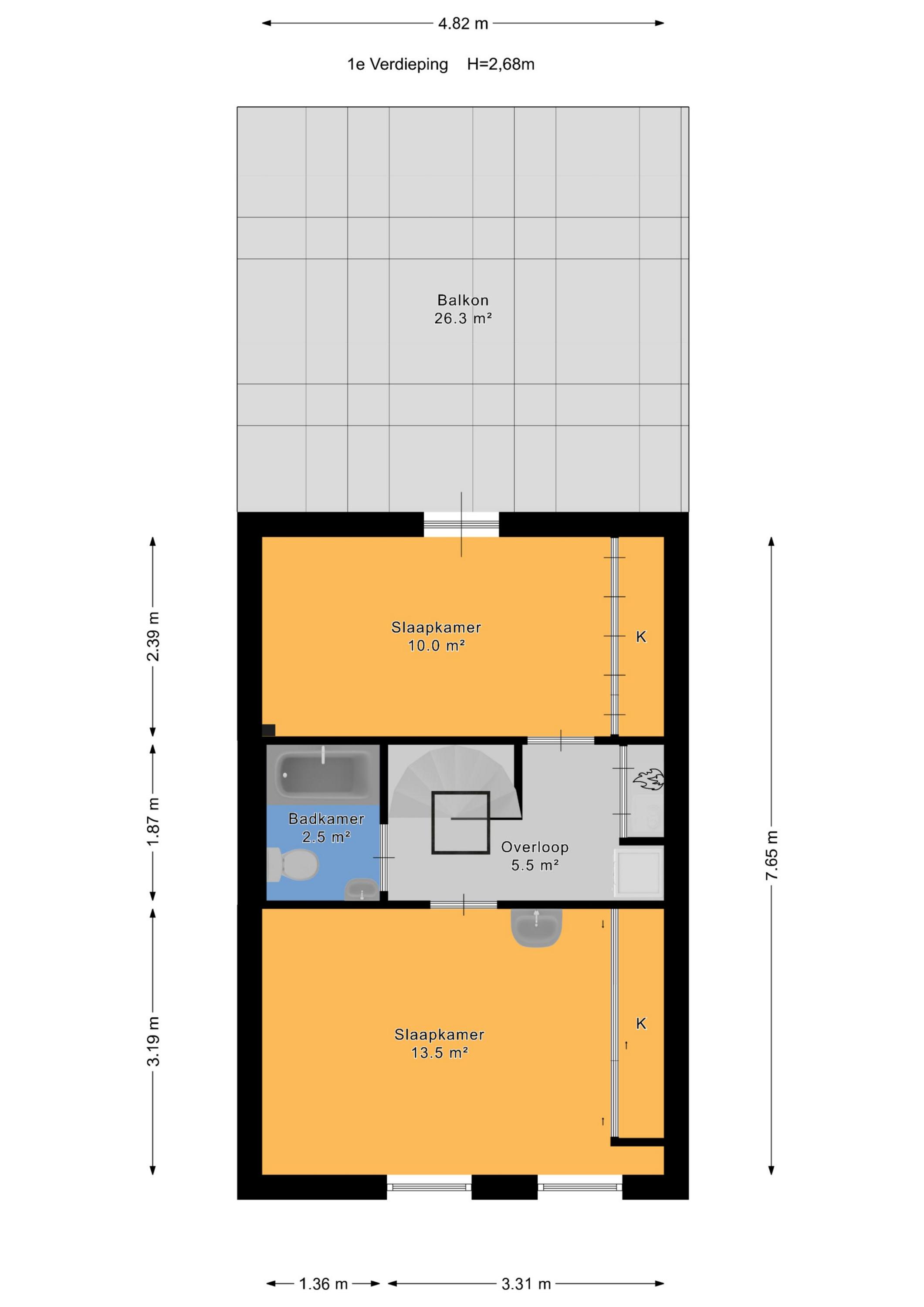 2e slaapkamer aan de achterzijde (ca. 4.82 x 2.39m).