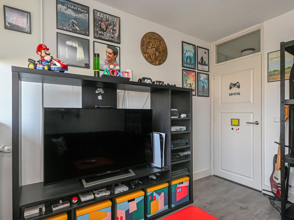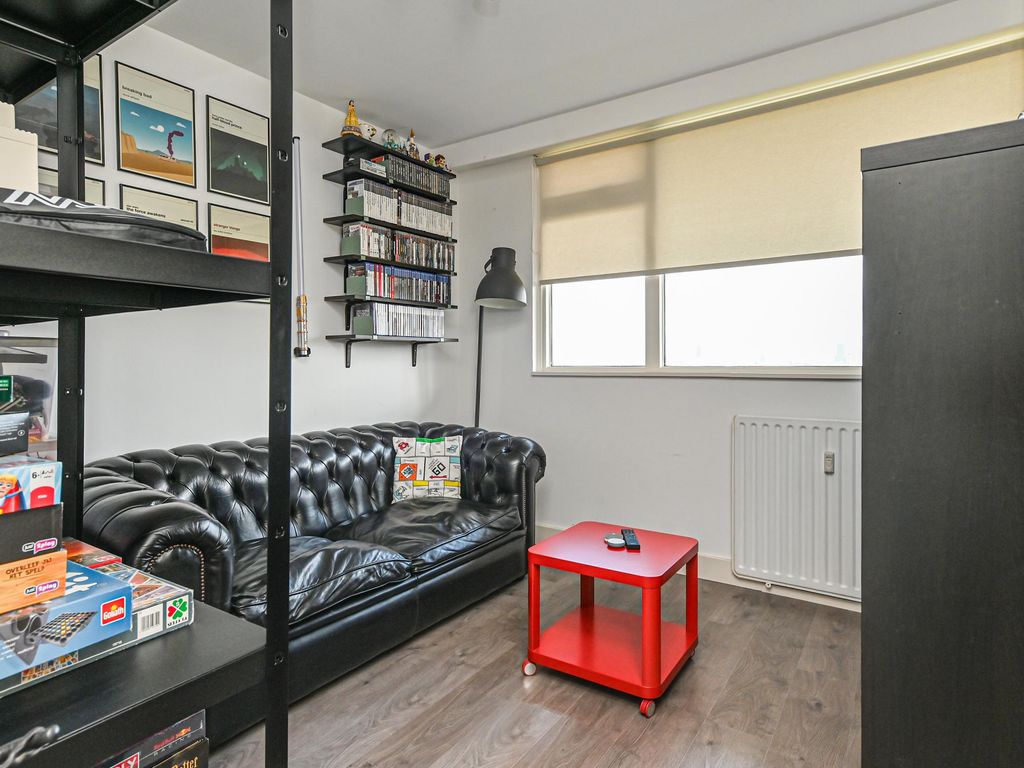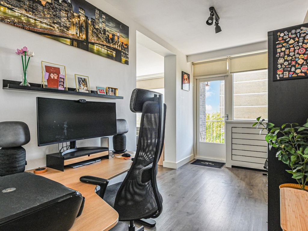 4e slaapkamer (ca. 4.14 x 2.06m) thans middels een doorloop verbonden met de woonkamer en met deur naar het balkon,