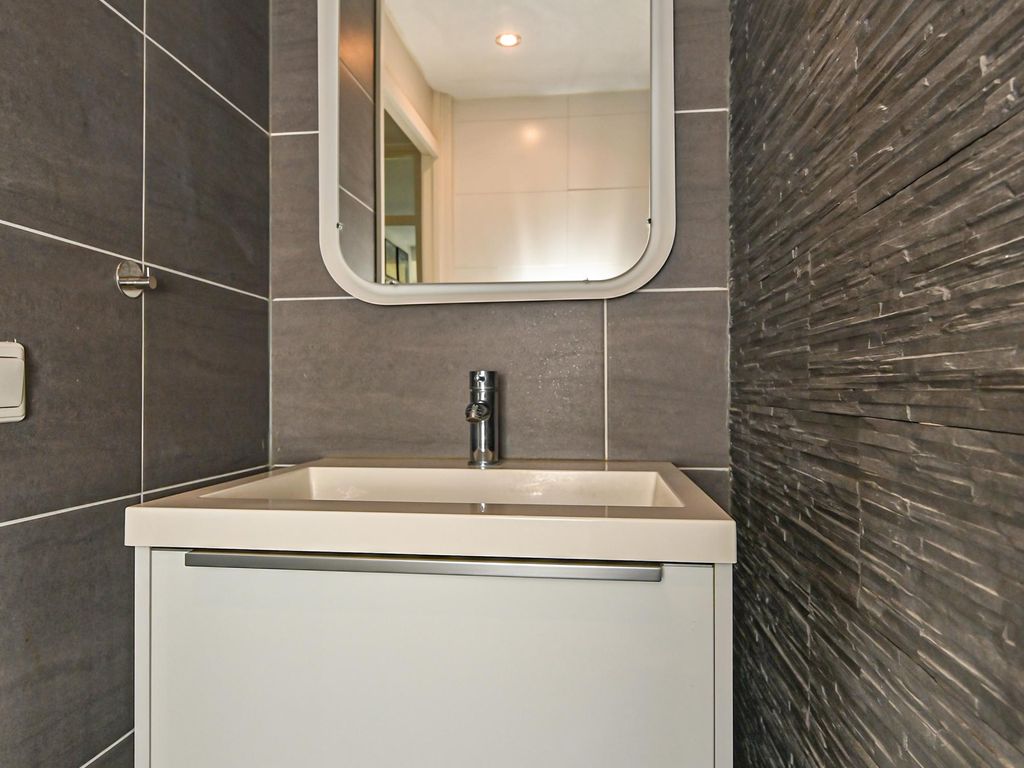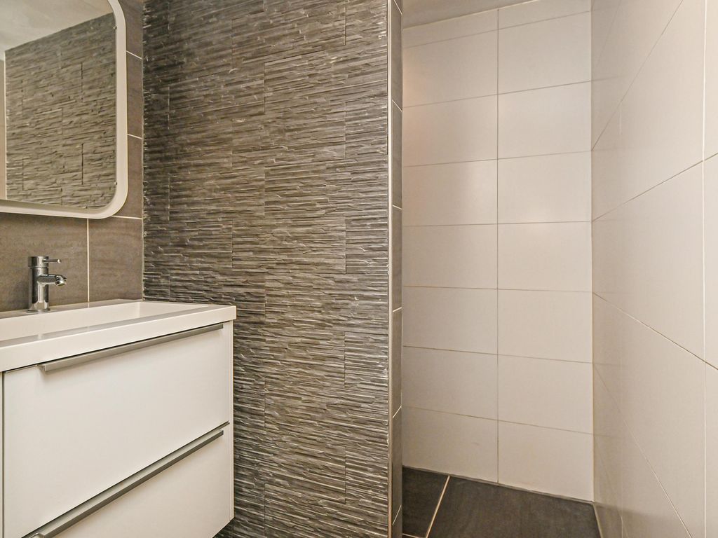 Moderne luxe badkamer (ca. 1.69 x 1.66m) met inloopdouche en wastafelmeubel.