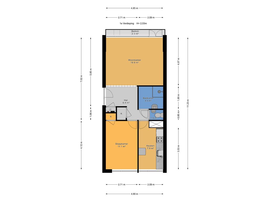 Entree van de woning, vaste kast met meterkast en ruime doorgebroken L-vormige wooneetkamer (ca. 5.85 x 4.85m) met veel zonlicht door de grote raampartijen. Vanuit de woonkamer heb je uitzicht op het park en de speeltuin. Via de openslaande deuren in de woonkamer kun je het zeembalkon betreden en is gelegen op het Zuiden.