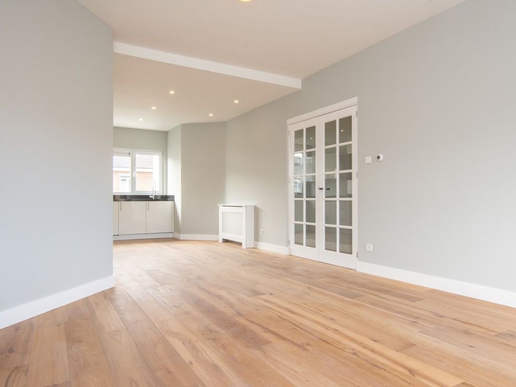 Lichte doorgebroken wooneetkamer (ca. 9.63 x 3.78m) met open keuken.