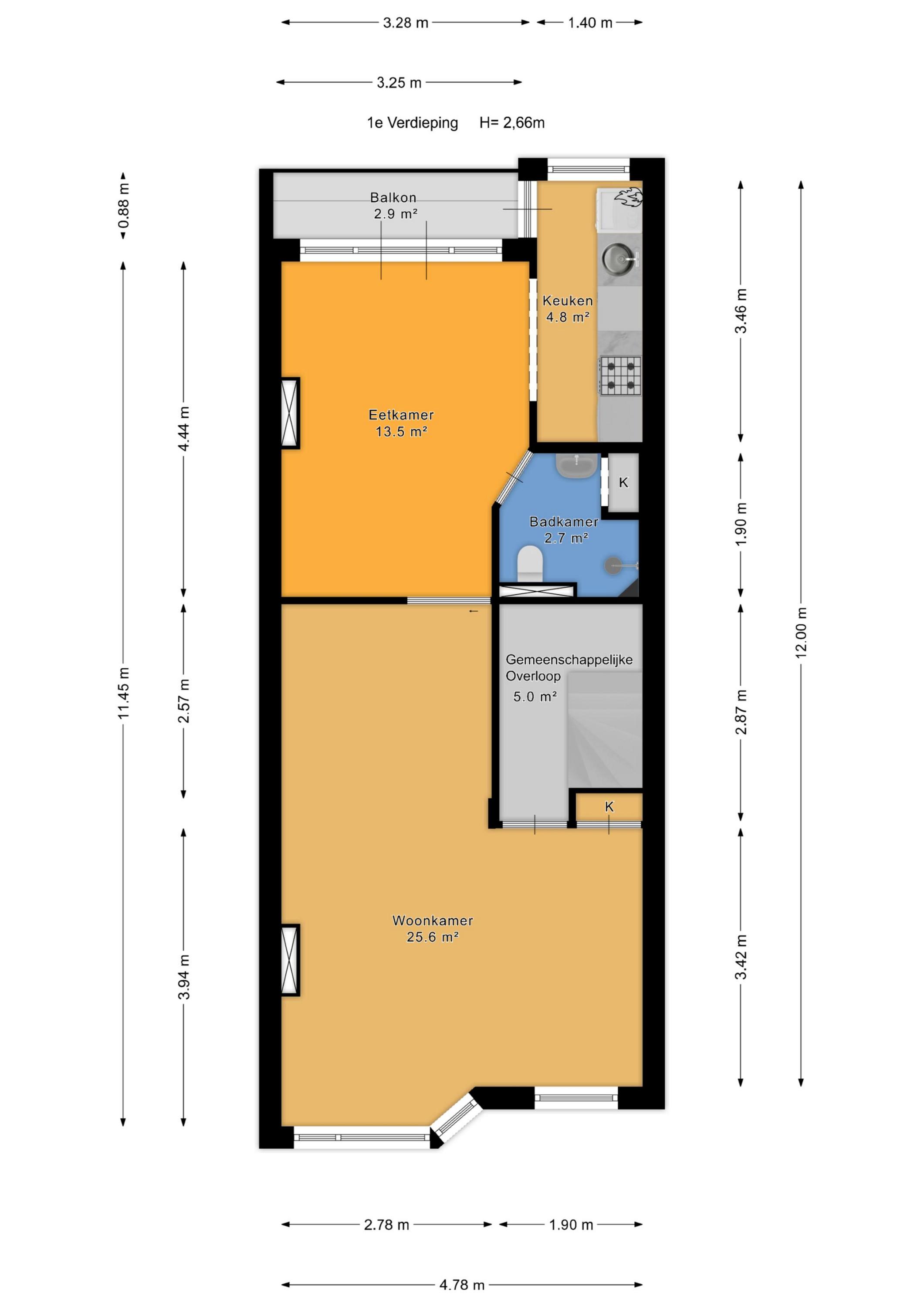 Toegang op straatniveau, gemeenschappelijke entree met trap naar 1e etage, alwaar gemeenschappelijke overlo... Lees meer