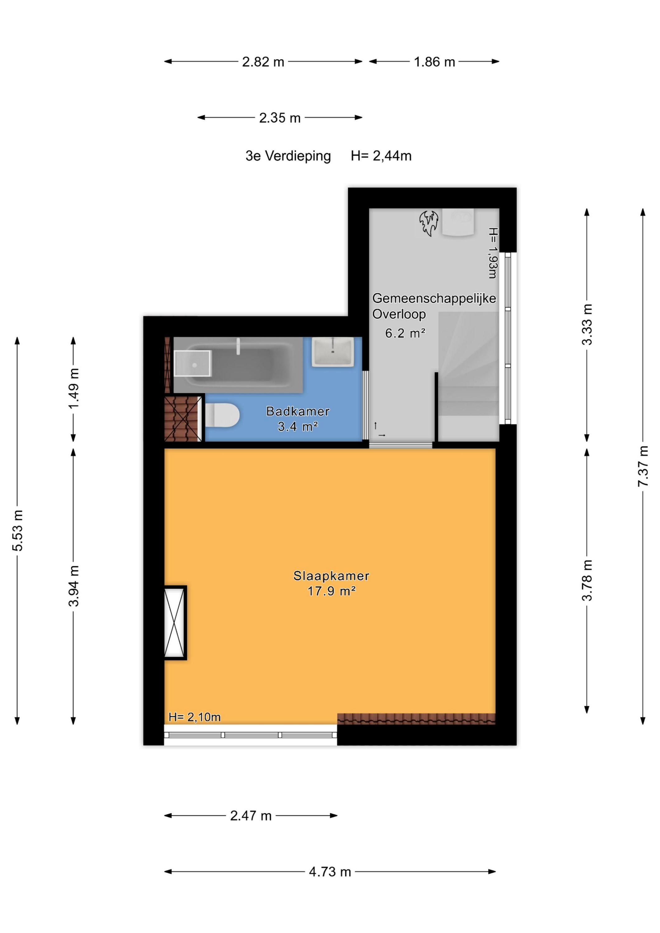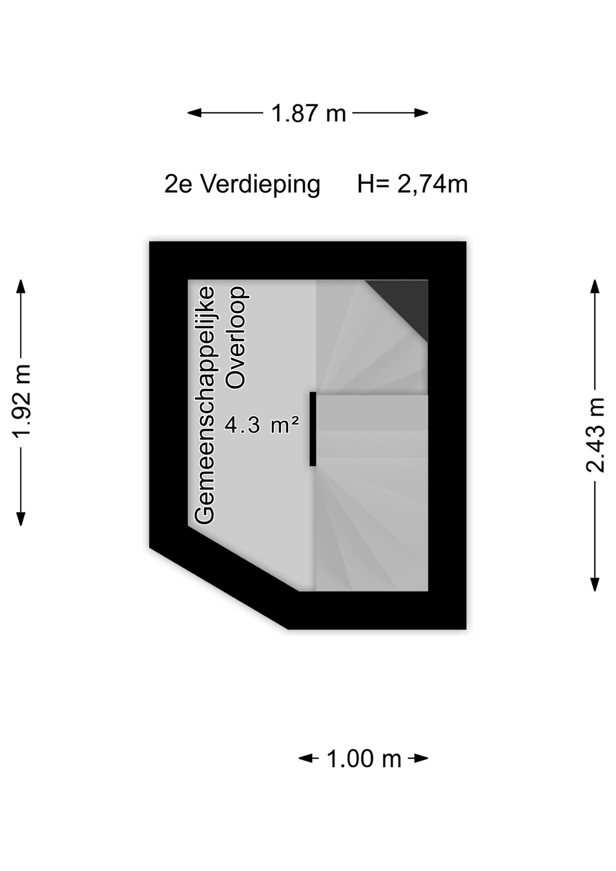 Via gemeenschappelijke overloop en trap ga je naar 2e en 3e etage.