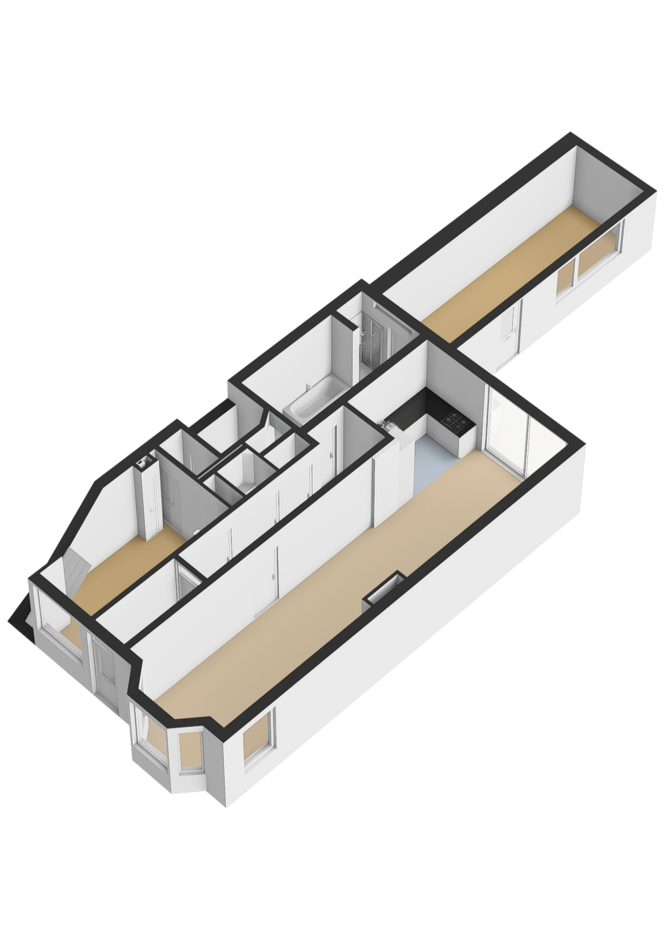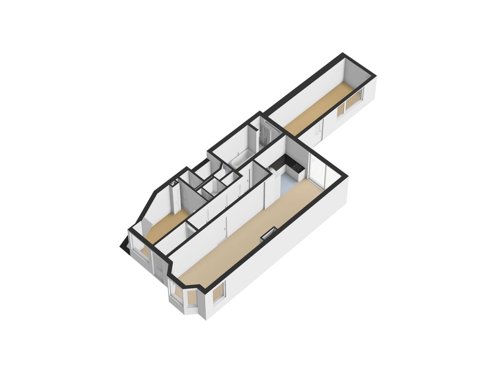 Een 3e slaapkamer kan worden gerealiseerd door het plaatsen van een wand in de doorgebroken wooneetkamer.