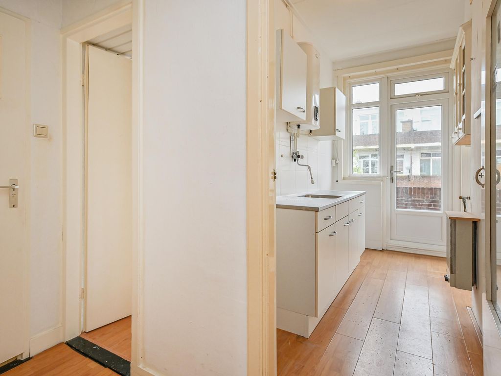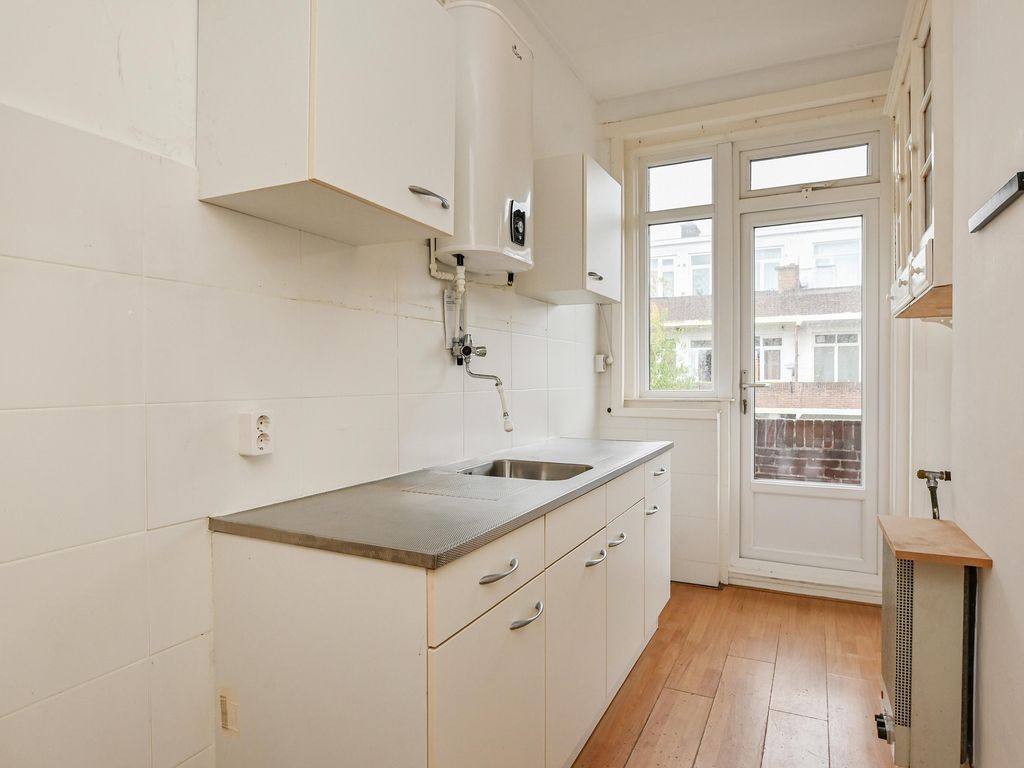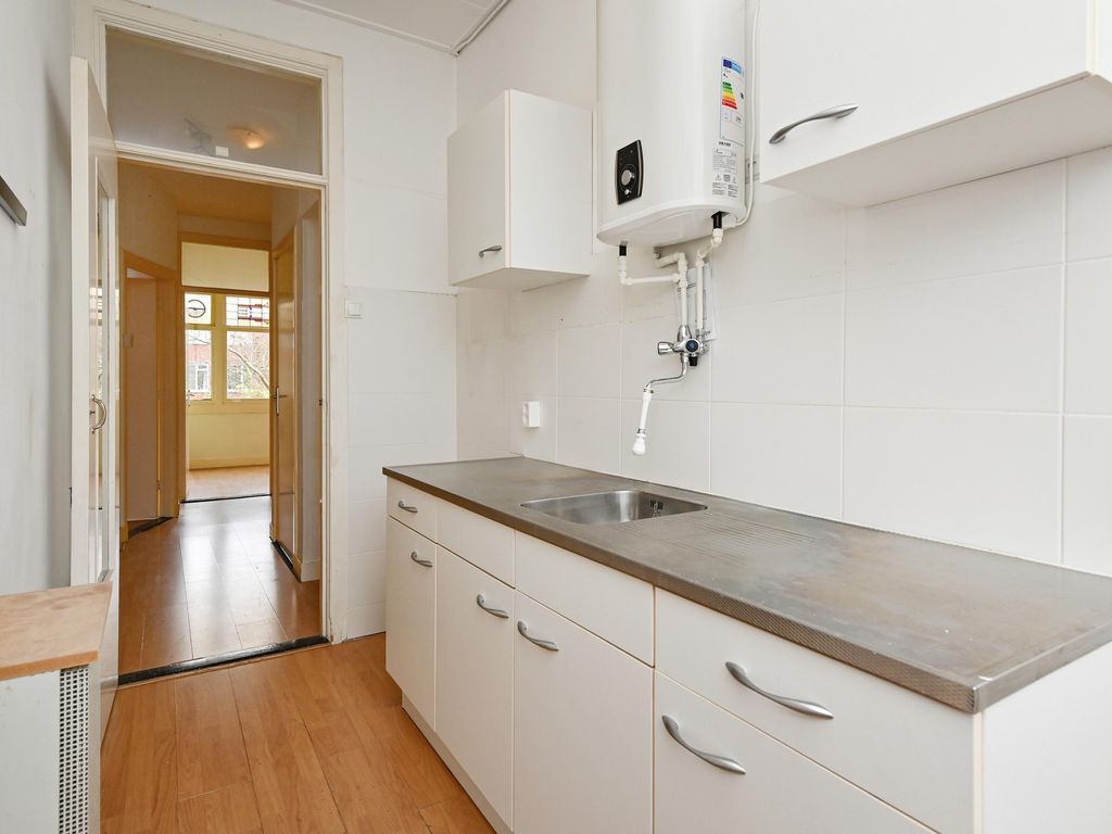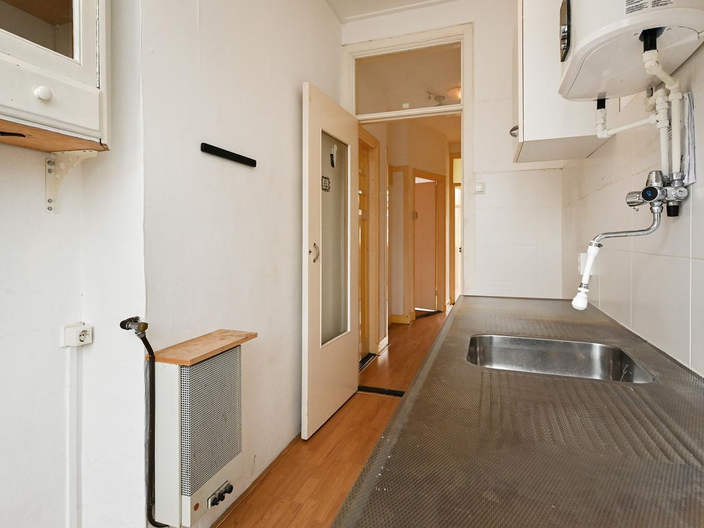 Eenvoudige doch nette keuken (ca. 3.40 x 1.83m) met deur naar het balkon.