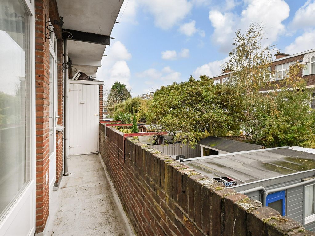 Ruim balkon (ca. 7.04 x 0.97) over de gehele breedte van de woning met balkonkast op het Zuidwesten.