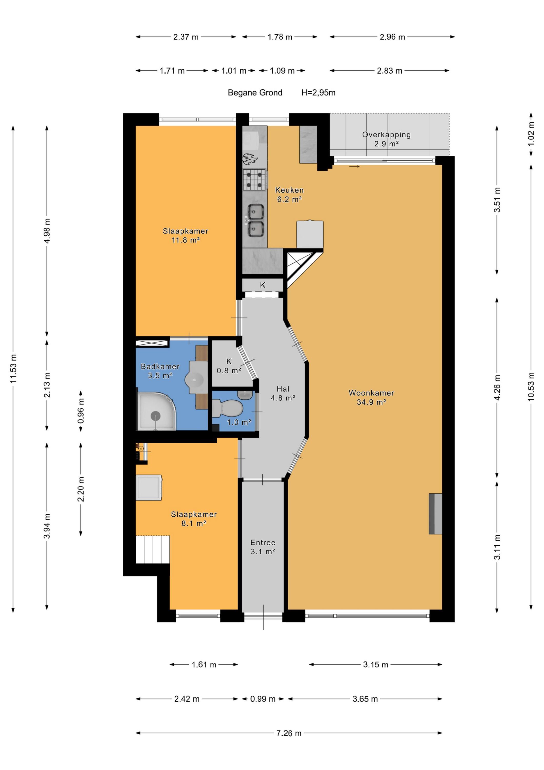 Een 3e slaapkamer kan eenvoudig worden gerealiseerd door het plaatsen van een wand in de doorgebroken wooneetkamer.