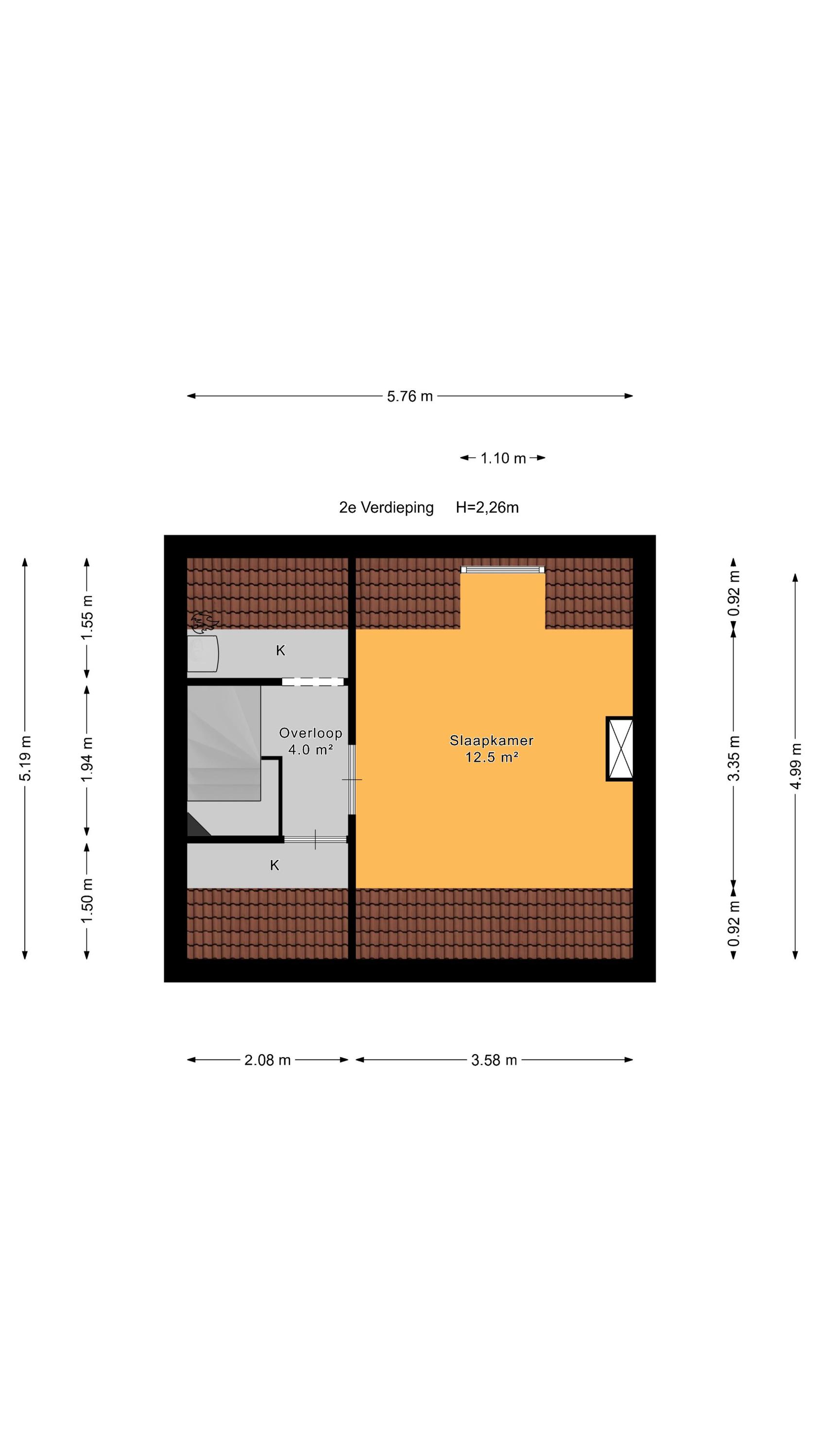 3e slaapkamer (ca. 3.58 x 3.35m) met dakkapel.