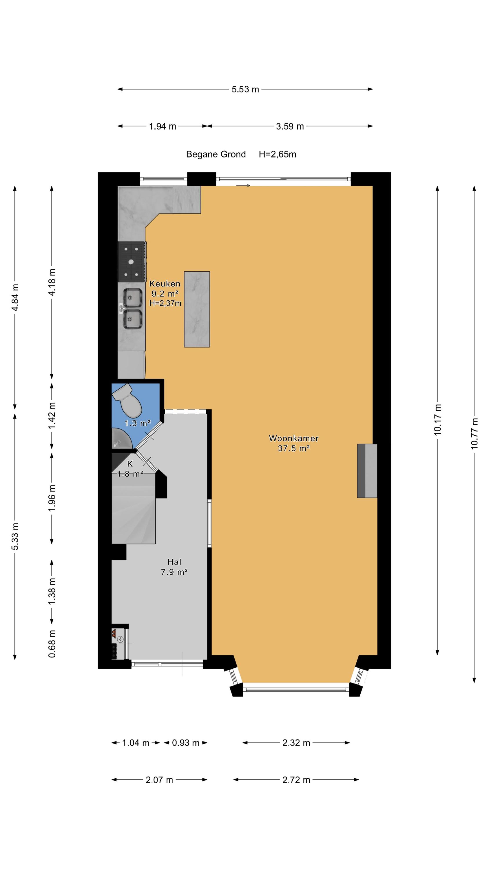 Ruime wooneetkamer (ca. 10.17 x 3.59m) met erker en veel lichtinval en schuifpui... Lees meer