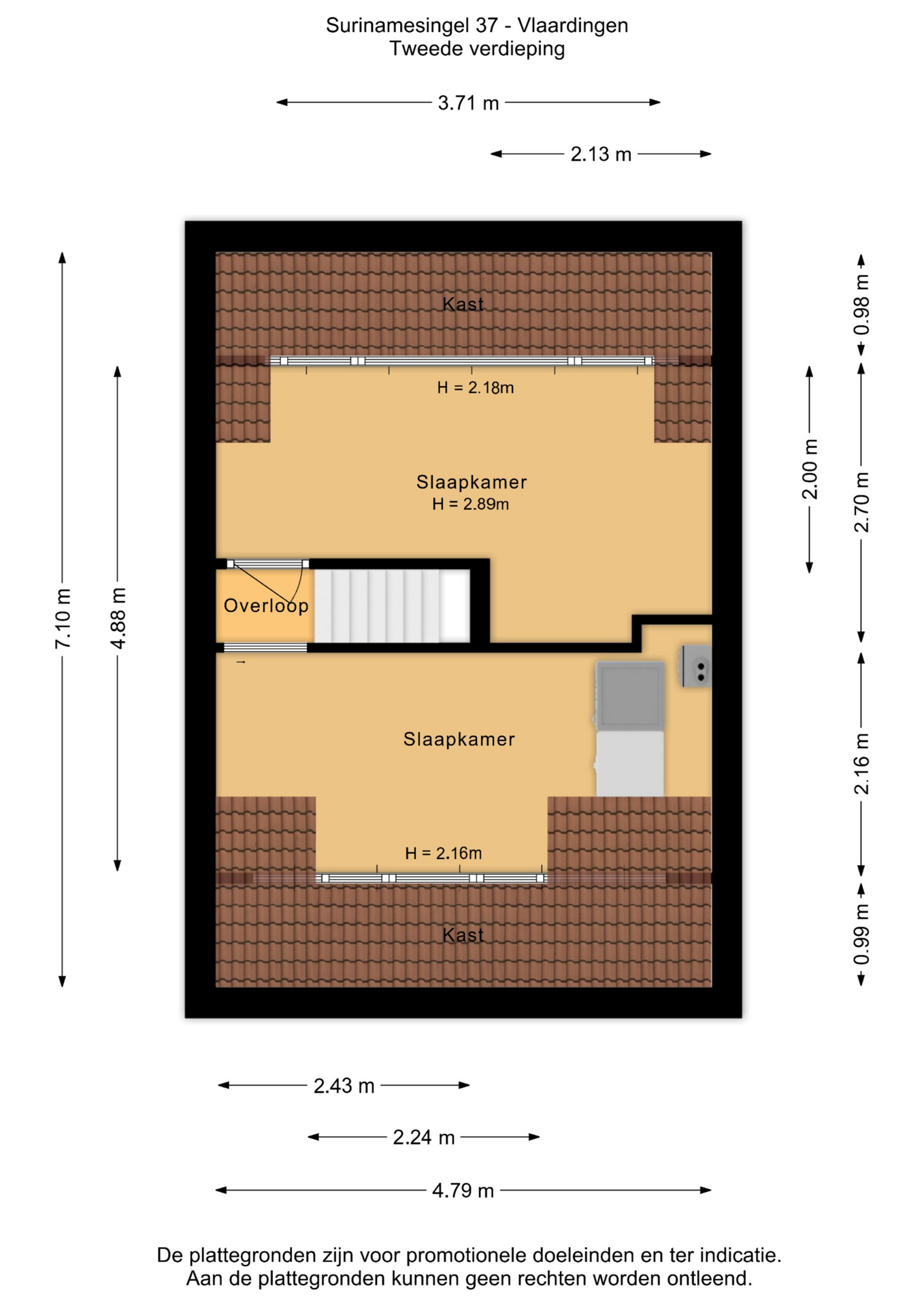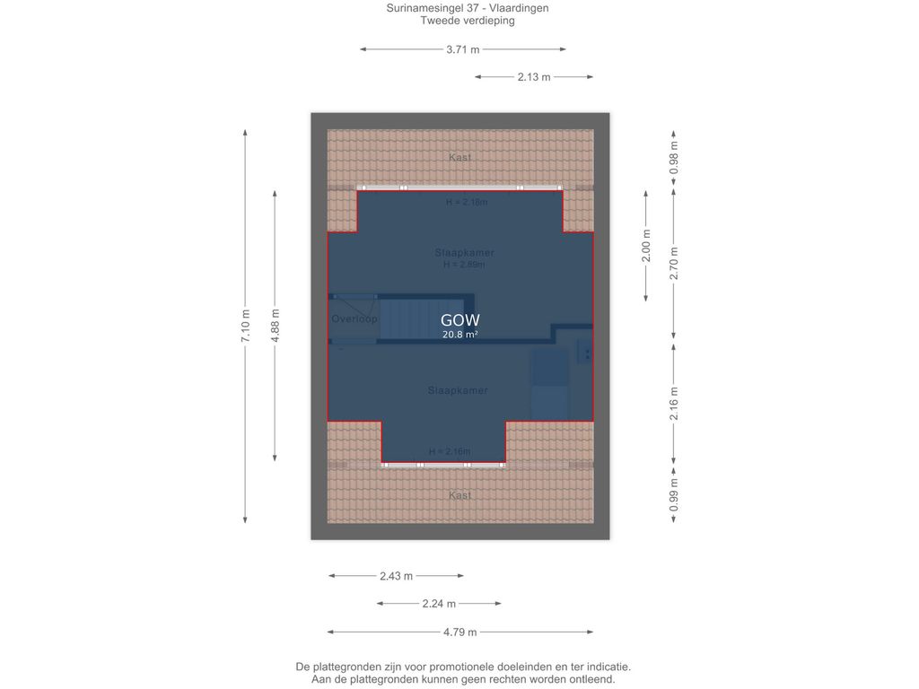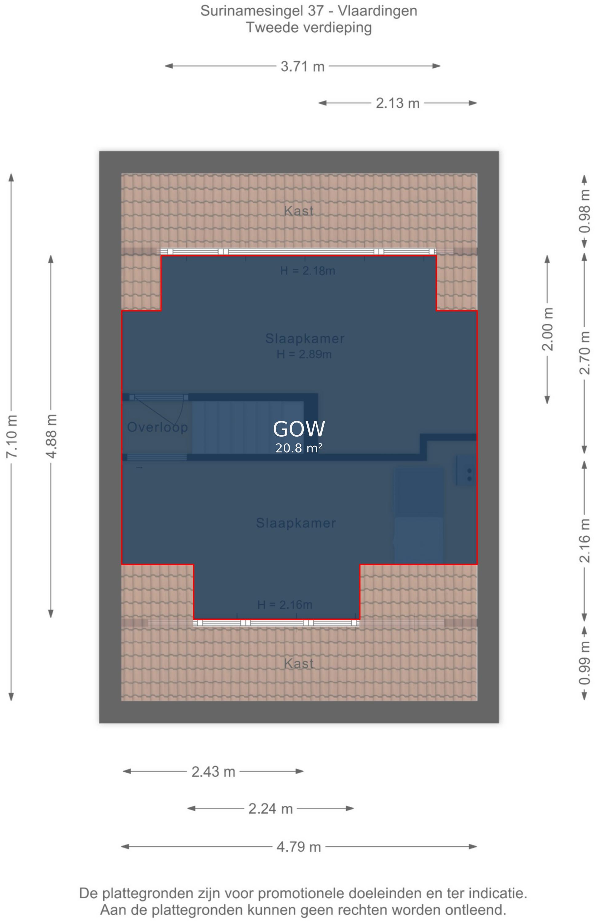 4e slaapkamer (ca. 4.79/2.24 x 2.16m) met dakkapel.