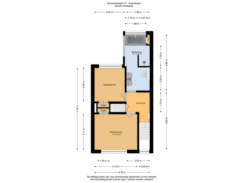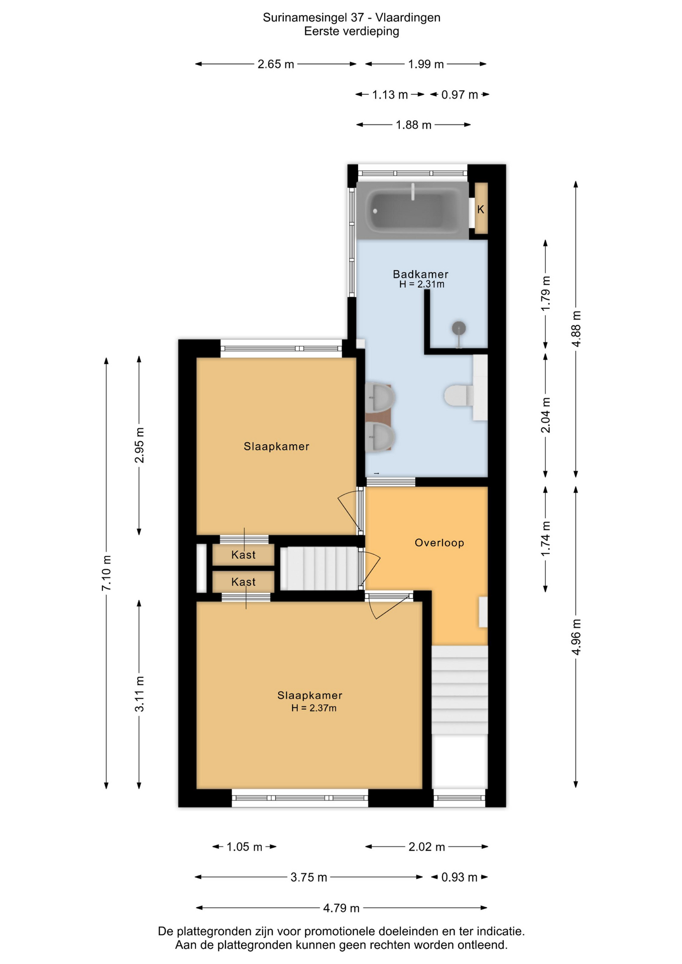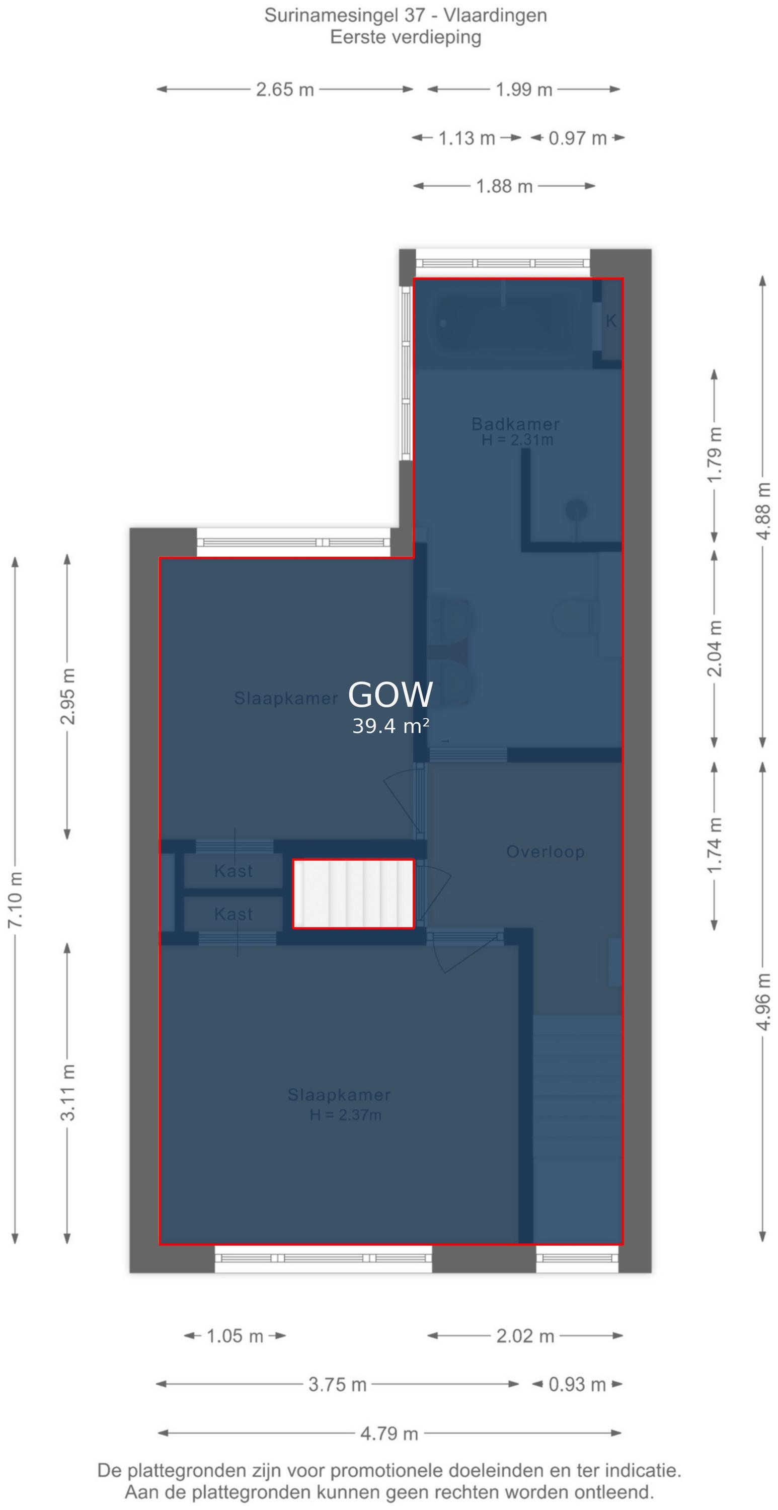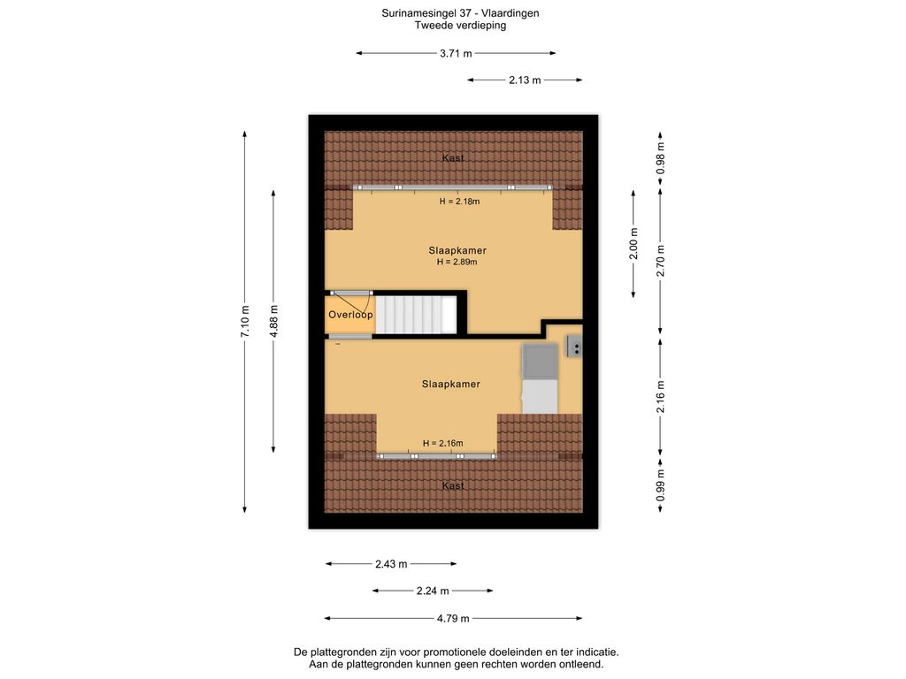 4e slaapkamer (ca. 4.79/2.24 x 2.16m) met dakkapel.