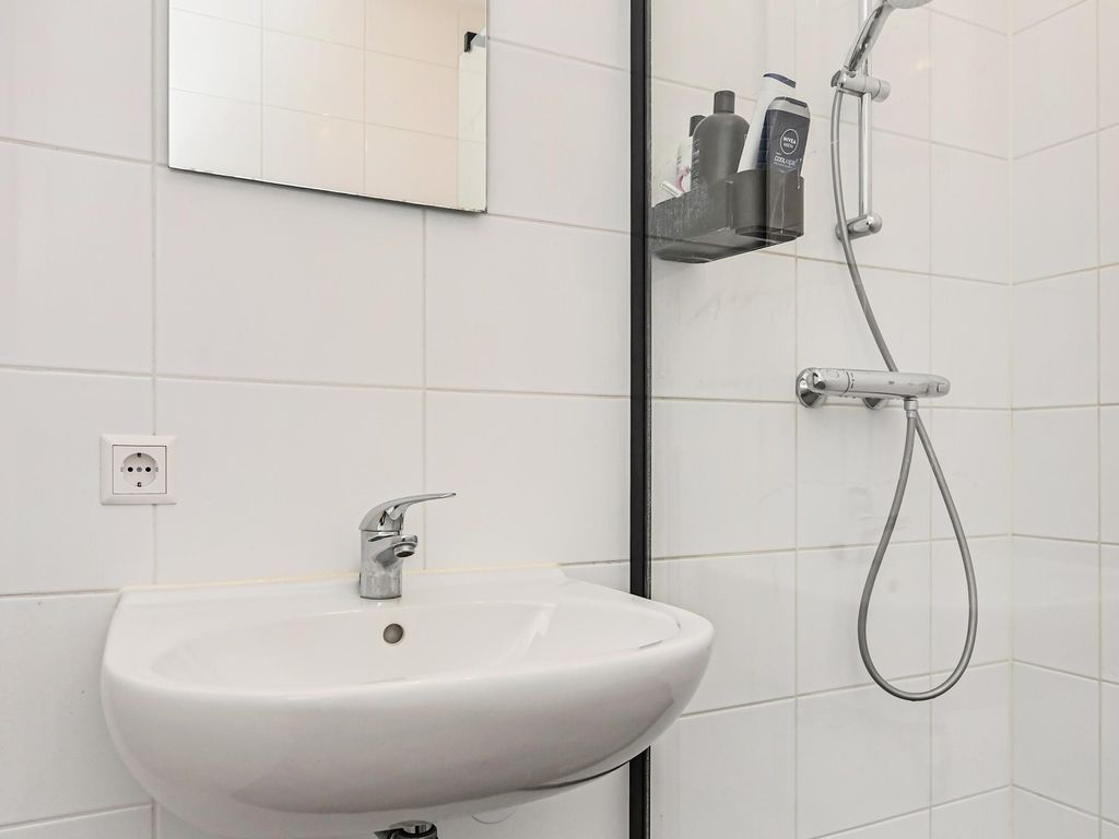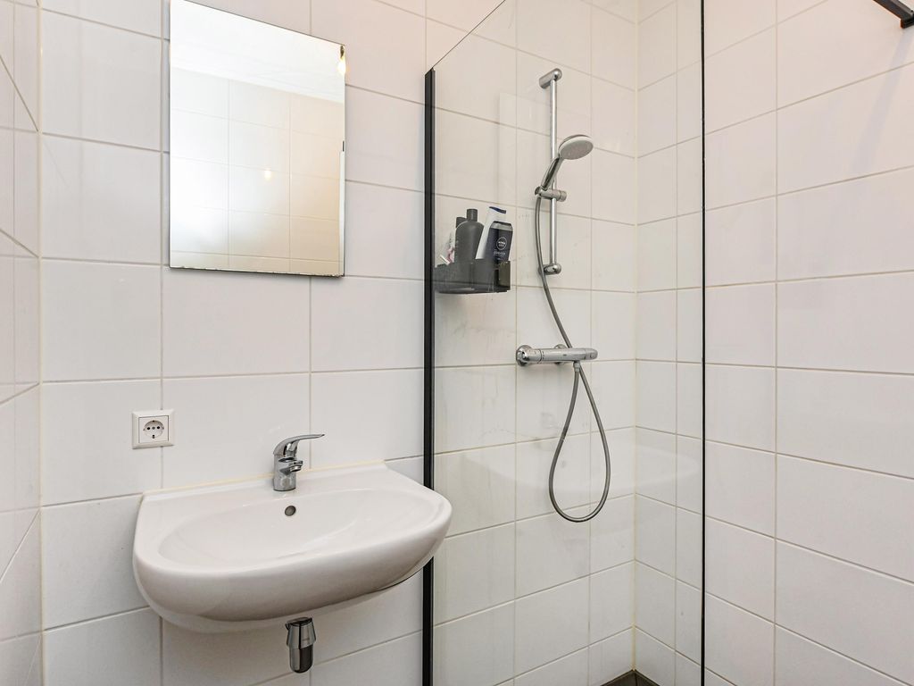Moderne badkamer (ca. 1.85 x 1.77m) met inloopdouche en wastafel.